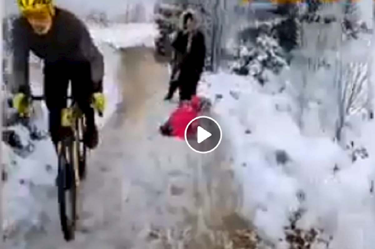 Una bambina stava passeggiando sotto la neve insieme alla famiglia il giorno di Natale. Un ciclista in...