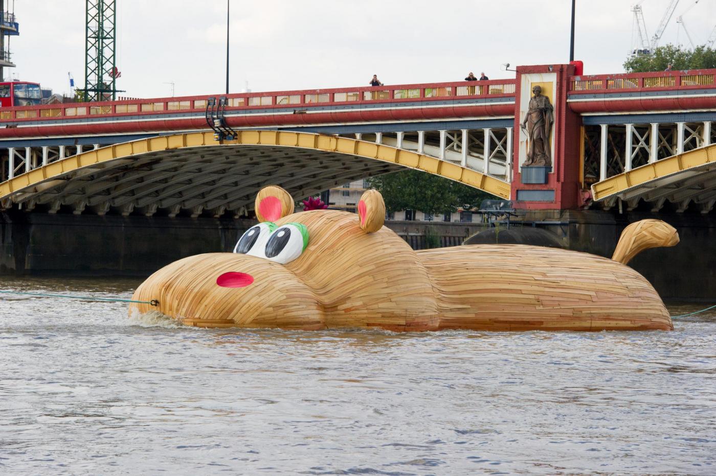 Ora la sua arte sbarca anche a Londra, lungo le rive del fiume che bagna la città. I londinesi hanno potuto ammirare un ippopotamo gigante di legno: “Lo scopo della mia arte è sempre stato quello di sconvolgere la routine quotidiana – ha spiegato l’artista – provocando stupore nei cittadini e dando loro un argomento di conversazione”.