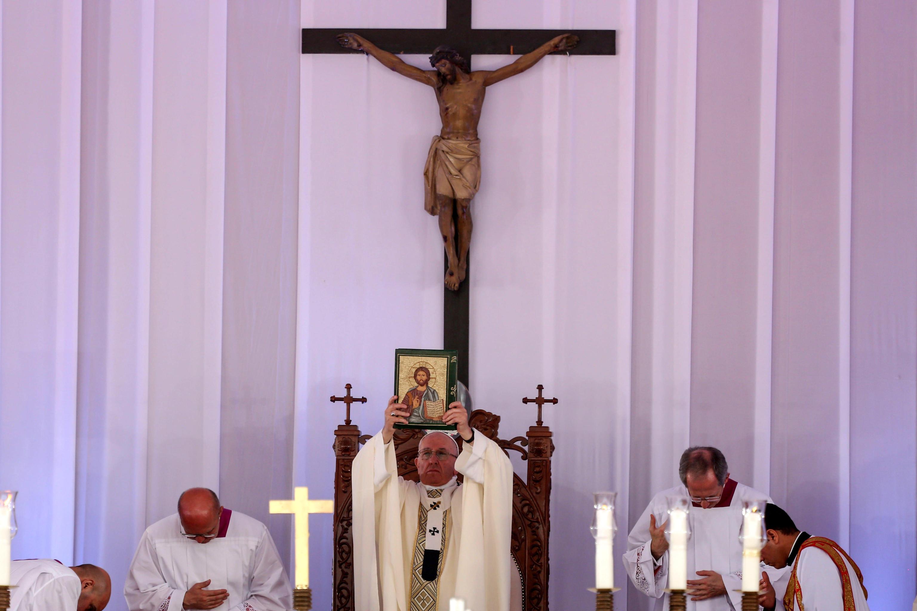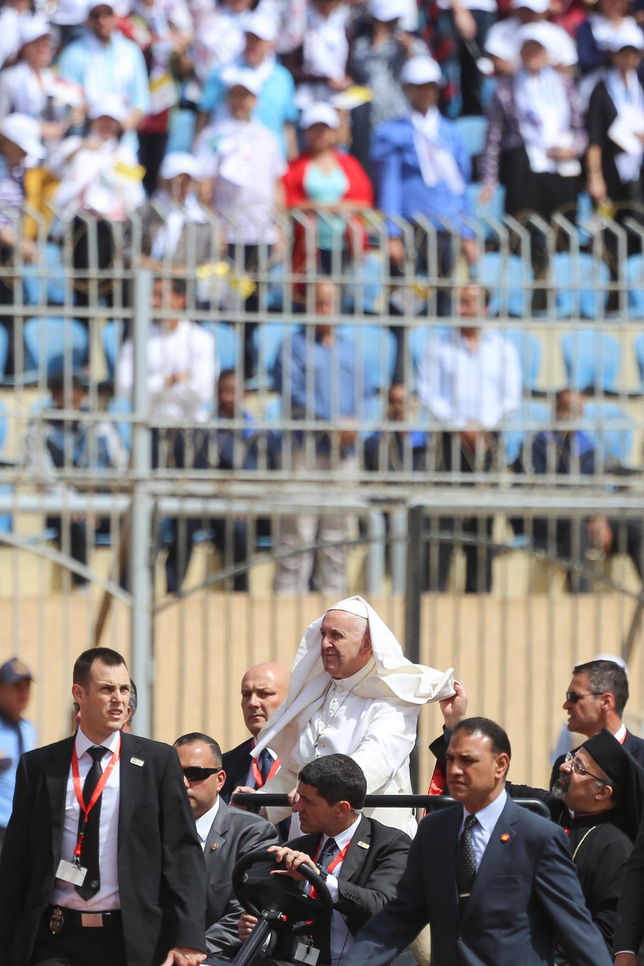 “Dio gradisce solo la fede professata con la vita, perché l’unico estremismo ammesso per i credenti è quello della carità! Qualsiasi altro estremismo non viene da Dio e non piace a Lui!” ha esclamato papa Francesco durante la messa per la comunità copto cattolico, nello Stadio dell’Aeronautica al Cairo. Malgrado la comunità cattolica egiziana sia molto piccolo (lo 0,30% circa della popolazione), ad assistere alla messa ci sono circa 30mila persone.