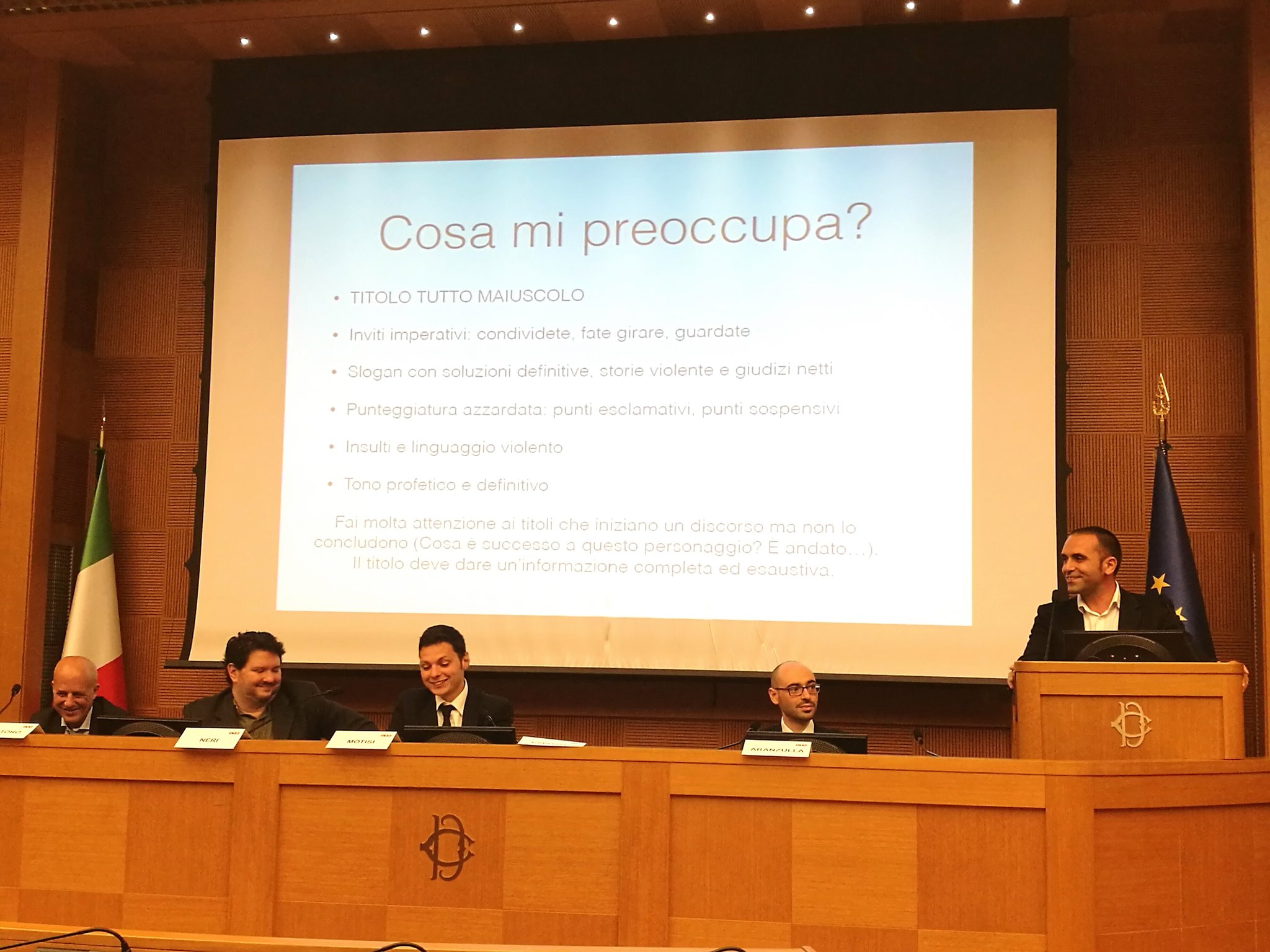 Firme importanti del giornalismo italiano come Peter Gomez (Il Fatto Quotidiano), Jacopo Iacoboni (La stampa), Annalisa Chirico (Il Foglio), Federico Ferrazza (Wired) ed Emiliano Fittipaldi (L’Espresso) si sono, invece, confrontati sul tema “Informazione e post-verità. Quale ruolo spetta ai giornalisti?”
