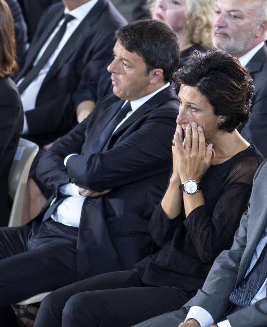 ASCOLI PICENO – Grande commozione per Agnese Renzi giunta assieme al Presidente del Consiglio per assistere ai funerali solenni delle vittime marchigiane del terremoto che ha colpito il centro Italia. Dopo due giorni di sforzi per cercare i dispersi, ad Ascoli Piceno si sono svolti infatti i funerali delle vittime del terremoto del Comune di Arquata del Tronto.