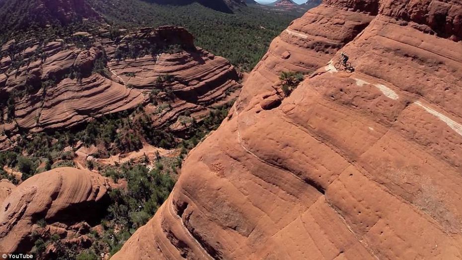 Red Rock State Park è uno dei più popolari d’America e si trova ad est di Phoenix. L’ultimo ad aver pedalato su questo strapiombo è stato il ciclista polacco di 30 anni Michal Kollbek. Le immagini della sua impresa sono state riprese da un drone e postato su YouTube dove è stato visto, in soli 4 giorni, già da 1 milione e 400 mila volte.