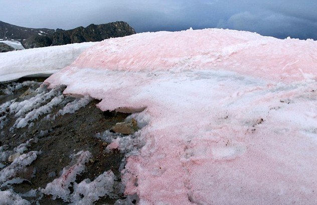 Nel corso di una stagione dello scioglimento dei ghiacci, i ricercatori hanno studiato che la neve pigmentata di rosso a causa delle alghe aveva un’albedo ridotta del 13%, causandone lo scioglimento. Lo scioglimento dei ghiacciai causa una crescita maggiore di alghe, che a loro volta accelerano il processo di disgelo scurendone la superficie.
