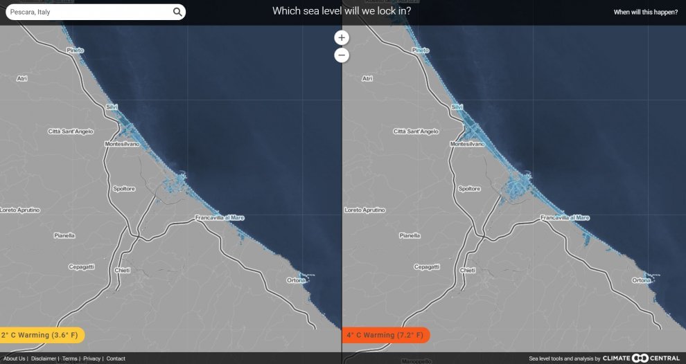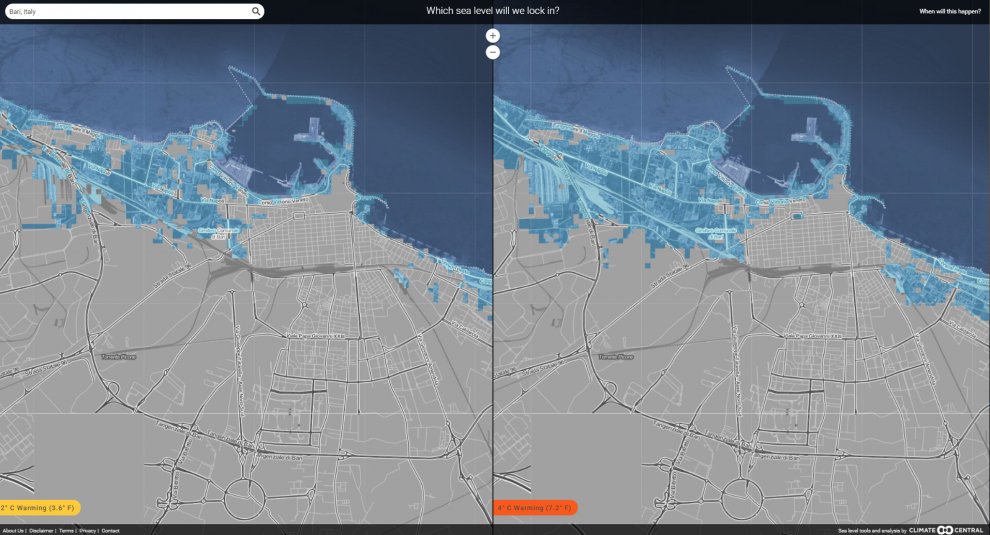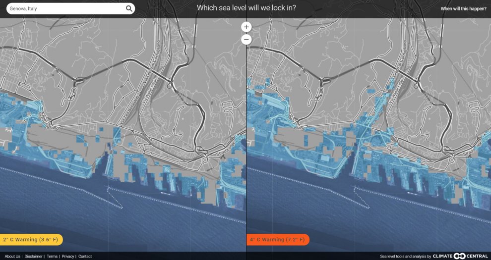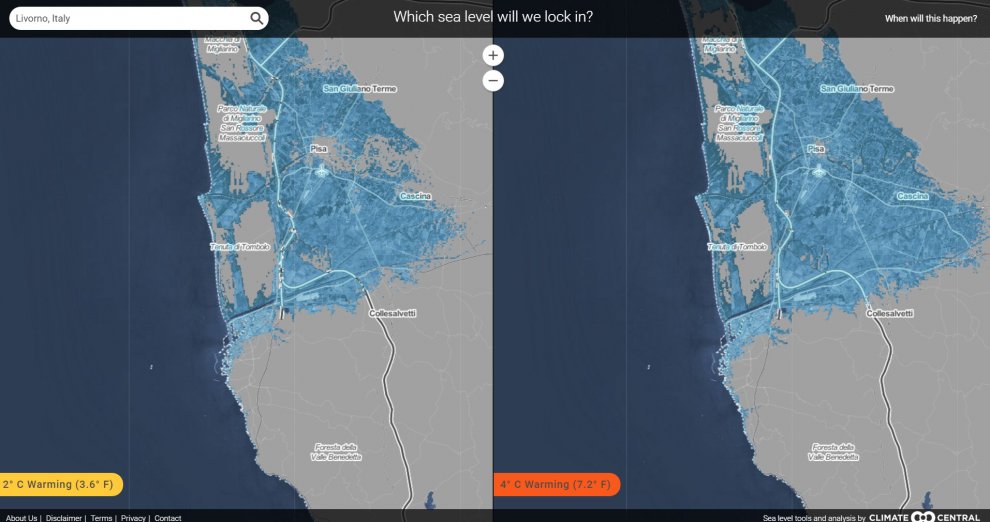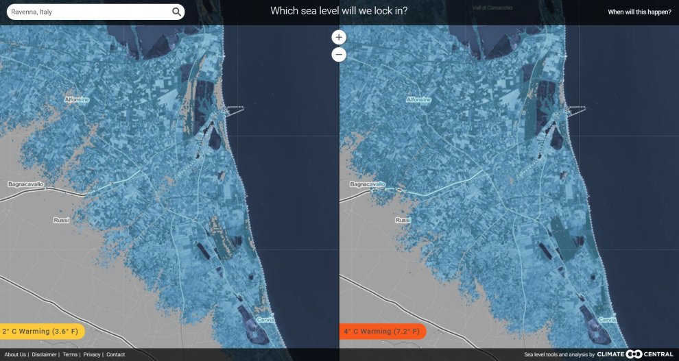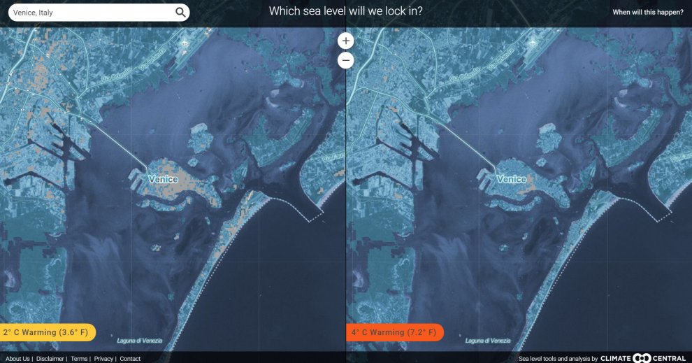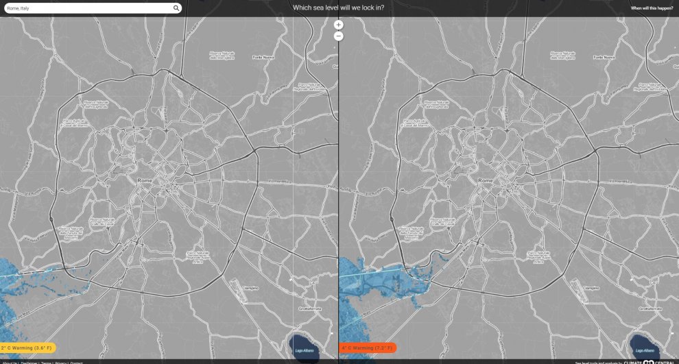 ROMA – Se le temperature si alzassero di soli due gradi, cambierebbero completamente le mappe del mondo e dell’Italia. Nella simulazione di Climate Central, centro di ricerca sull’ambiente americano, ripresa da Repubblica, lo scioglimento dei ghiacci porterebbe ad un innalzamento dei mari di quasi cinque metri. Con conseguenze disastrose.