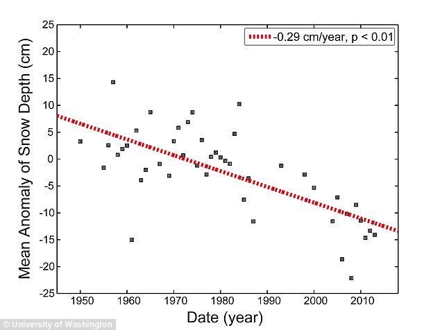 Questo alto tasso di perdita del livello della neve conferma le ricerche precedenti che avevano rivelato un assottigliamento della neve da 36 centimetri a 23 centimetri nelle regioni occidentali. Il livello è passato ad esempio da 33 cm a 15 sopra Beaufort e Chukchi, mari che si trovano ad ovest e a nord dell’Alaska.