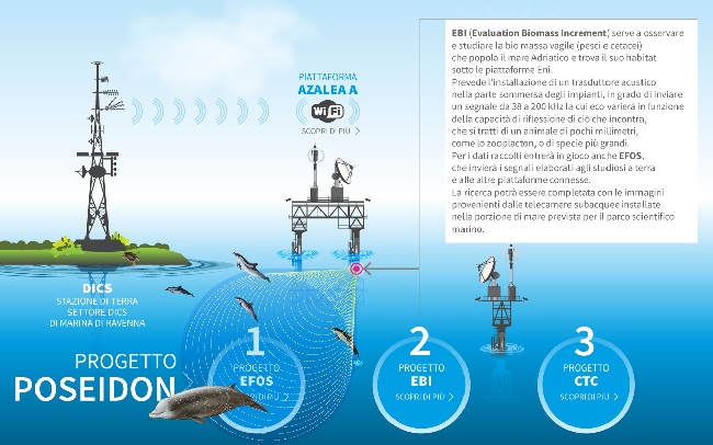 ROMA – Un esempio intelligente di recupero architettonico in favore dell’ambiente: Poseidon sarà il primo progetto di parco marino in Europa a riutilizzare a scopo scientifico e pubblico le strutture offshore dismesse; il progetto ambizioso di Eni si distingue per contenuto tecnologico, la dislocazione e la grande capillarità di ricezione e trasmissione dei dati ambientali marini.