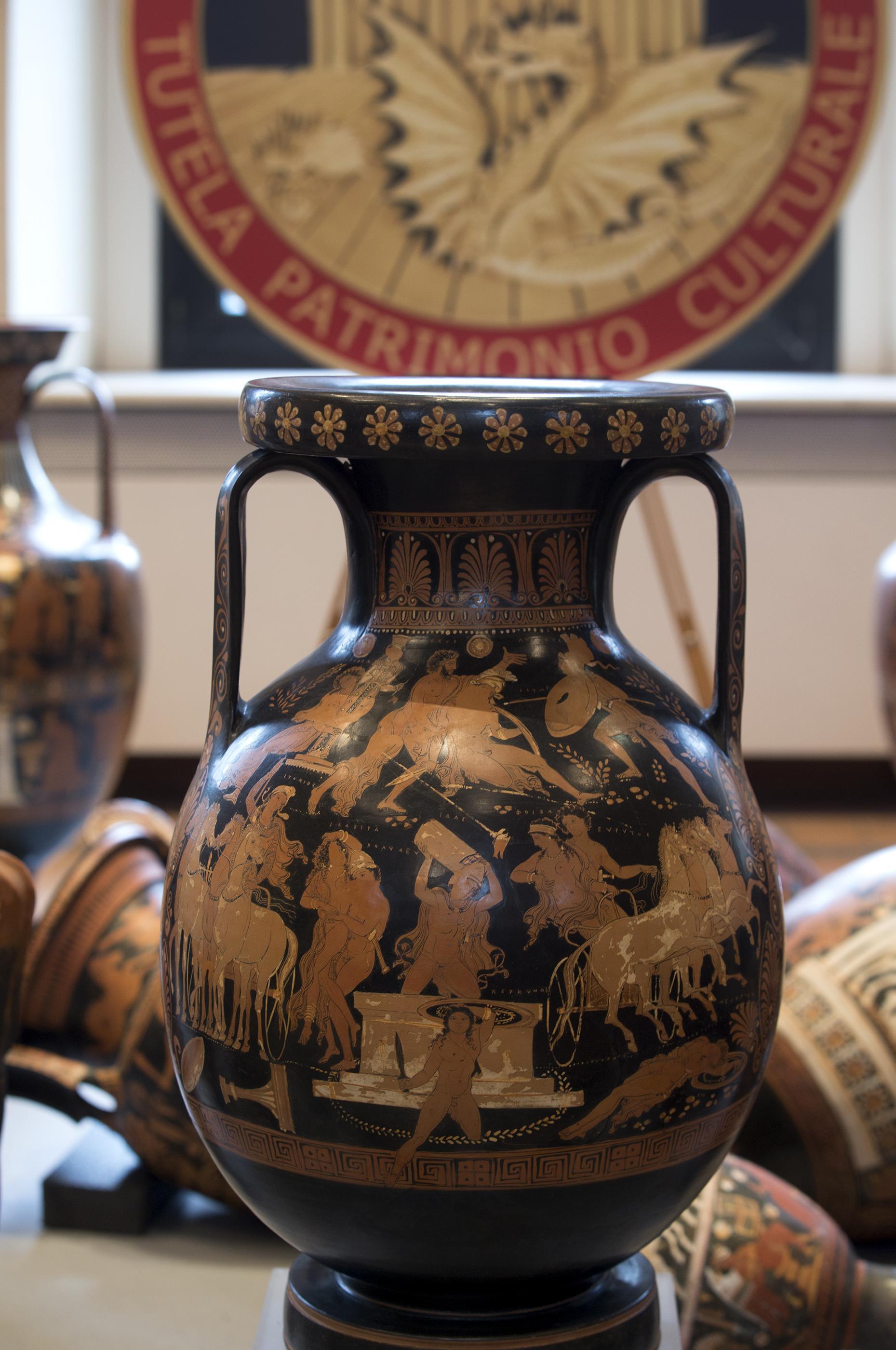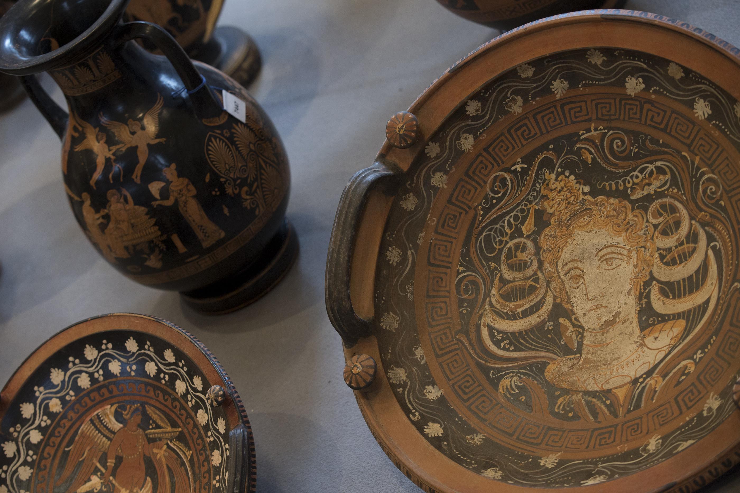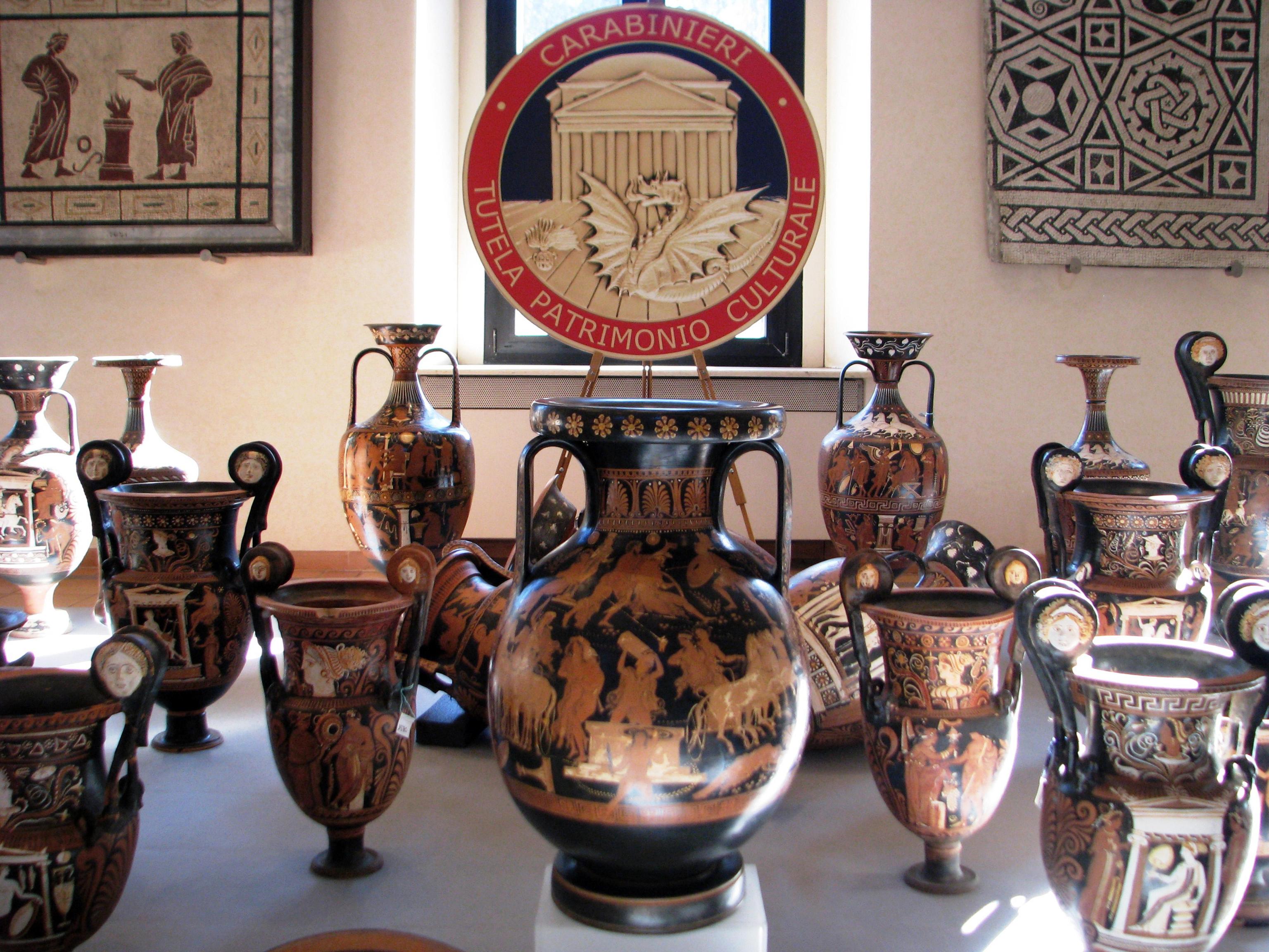 Intanto, la mirabolante collezione verrà divisa tra i musei archeologici delle (supposte) aree di provenienza, ovvero Lazio, Campania, Sardegna, Puglia, Basilicata e Sicilia. Una distesa di crateri a figure attiche, loutrophoros, oinochoe, trozzelle e statue votive, tra cui spicca un’anfora corinzia del VI secolo a.C. decorata con il mito di Teseo. Ma, sottolinea la soprintendente archeologica di Roma, Maria Rosaria Barbera, ”c’è anche quella con il Ratto delle Leucippidi o le donne ammantate delle tanagrine.
