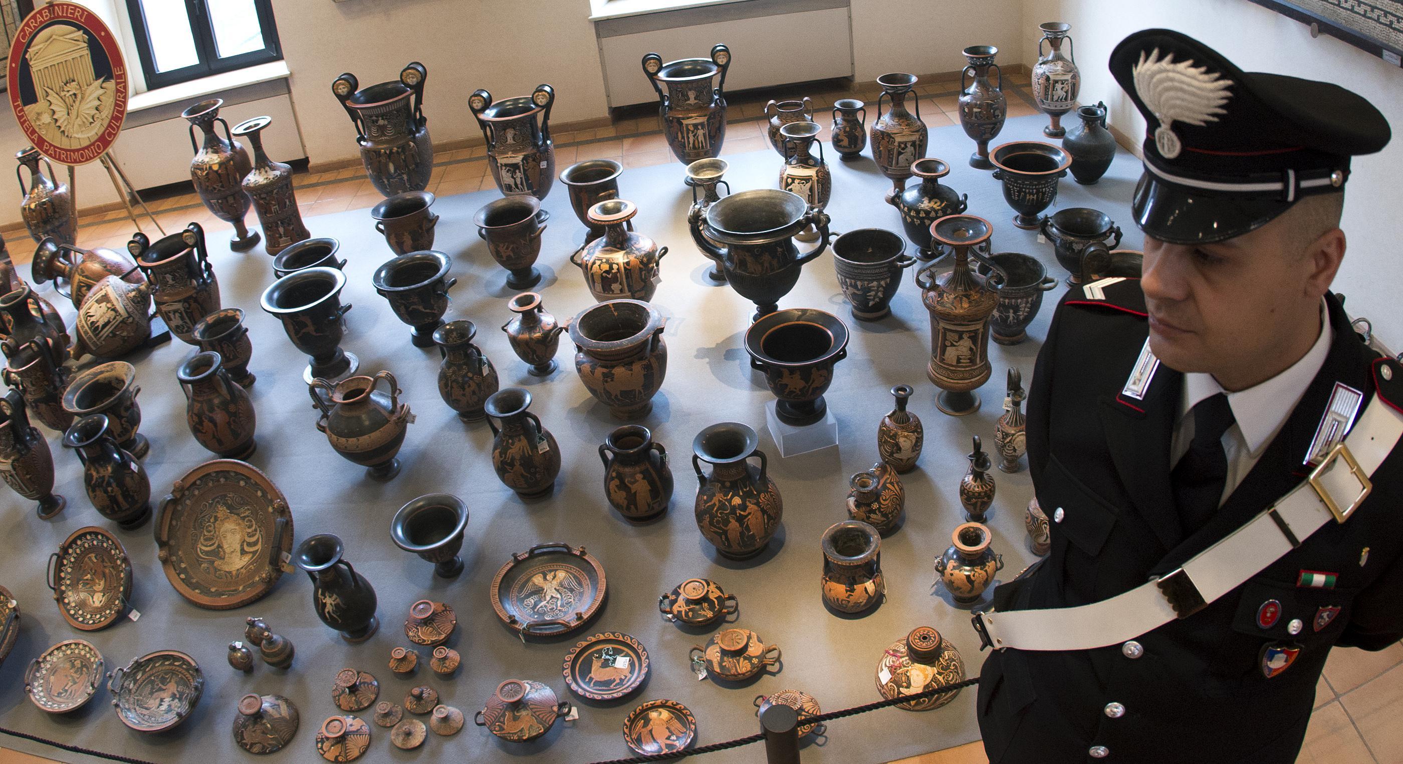 È l’impressionante collezione di reperti archeologici che un trafficante d’arte smerciava illegalmente in tutto il mondo dalla sua base in Svizzera e che oggi i Carabinieri del Comando Tutela Patrimonio restituiscono al patrimonio italiano al termine di quella che ricorderemo come ”Operazione Teseo”: in tutto 5.361 pezzi dal 1000 a.C. al II-III secolo d.C, per un valore stimato di 50 milioni di euro.