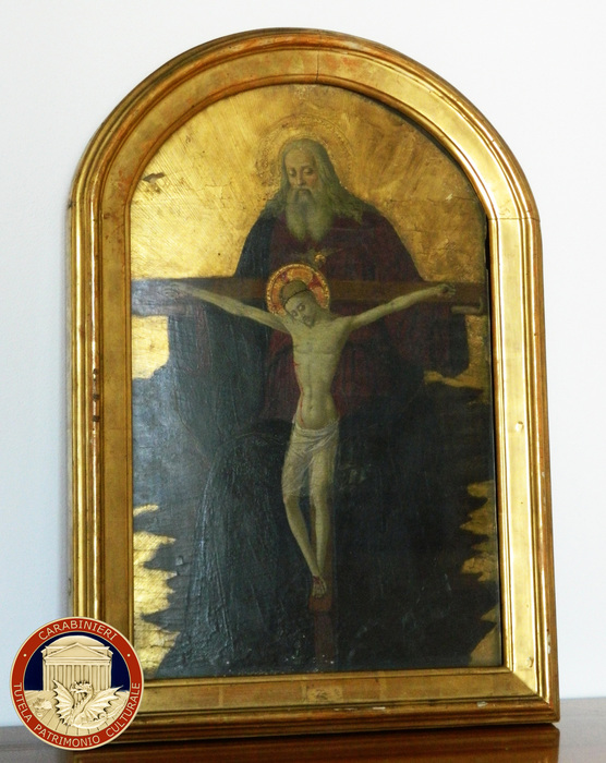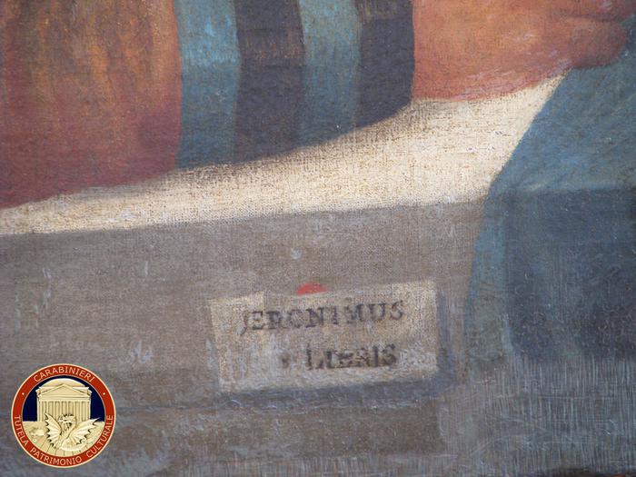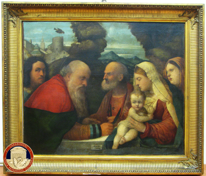 I tre dipinti erano stati trafugati durante la guerra dai nazisti e facevano parte della collezione Borbone – Parma ed erano custoditi nella villa Pianore a Camaiore e si tratta di un dipinto olio su tela attribuito a Giovanni Battista Cima, in arte “Cima da Conegliano” (1460-1518) raffigurante una “Madonna con Bambino” (65×51 cm); un dipinto tempera su tavola a fondo oro attribuito a Alesso Baldovinetti (1425-1499) raffigurante la “Trinità ” (60×38,5 cm a cuspide); un dipinto olio su tela firmato in cartiglio in basso al centro “Jeronimus ex libris”, Girolamo Dai Libri (1474-1555), raffigurante “Circoncisione/presentazione di Gesù al Tempio”.
