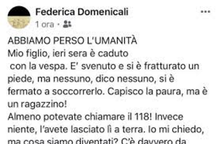 Gabriele cade col motorino, lo sfogo della mamma Federica Domenicali: “Nessuno l’ha soccorso” Cronaca Italia Gabriele cade col motorino, lo sfogo della mamma Federica Domenicali: “Nessuno l’ha soccorso” admin Dicembre 14, 2018 LUCCA – Il figlio ha avuto in incidente in scooter e nonostante chiedesse aiuto nessuno si è...Read More