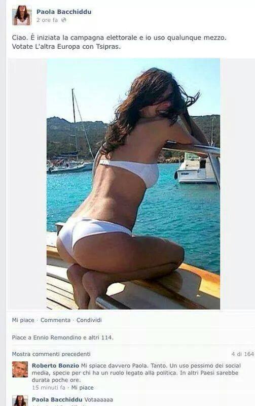 Più terra terra Paola Bacchiddu, l’ex portavoce bacchettata da Barbara Spinelli per la foto in bikini: