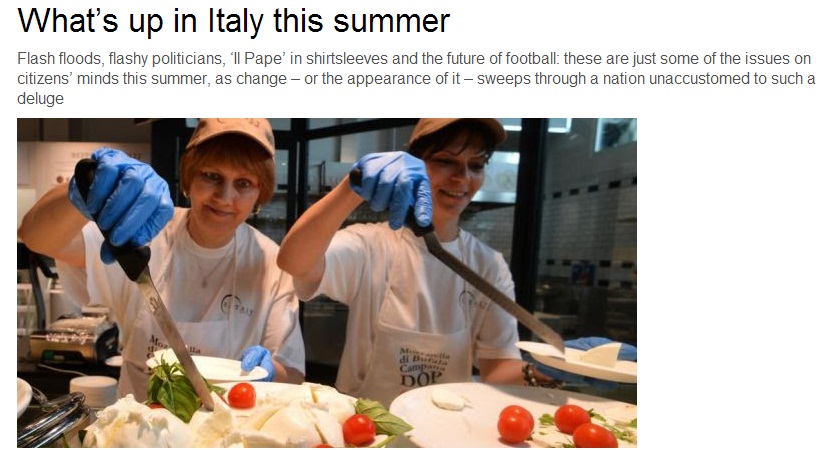 In un articolo sull’Italia di Paddy Agnew (What’s up in Italy this summer, Cosa succede in Italia questa estate), molto dubbioso sulla capacità di Matteo Renzi di tirare l’Italia fuori dal pantano, c’è un capoverso intitolato:
