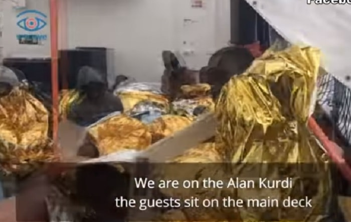 Nel video pubblicato dall’Agenzia Vista di Alexander Jakhangiev, i migranti a bordo della nave. In quel tratto di mare piove e c’è vento. Il video mostra i migranti sotto le coperte termiche. Il video è stato diffuso dalla pagina Facebook della Sea Eye.