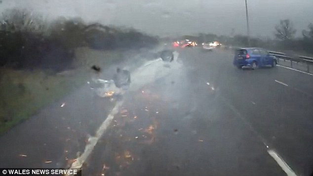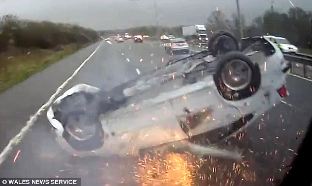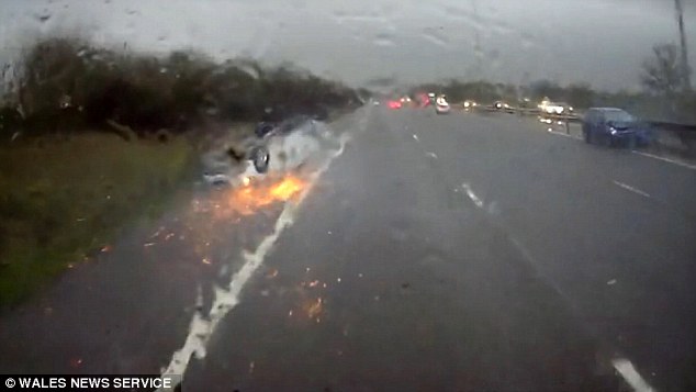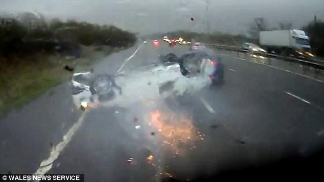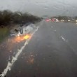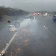 A bordo c’era anche un bambino di 4 mesi a bordo: essendo legato al seggiolino, per sua fortuna è sopravvissuto all’auto che si è ribaltata. La Volvo del padre si è capovolta volando per due corsie. Il tetto dell’auto, strisciando sull’asfalto ha creato delle scintille. L’auto, mentre sbanda colpisce un’altra auto blu. Il tutto viene ripreso dalla dashcam di un camion che si vede improvvisamente superare dall’auto bianca, quella con il bambino a bordo, che si è già cappottata.