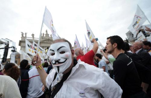 Alla piazza che gli urla “Tutti a casa!”, replica con una battuta: