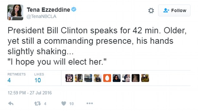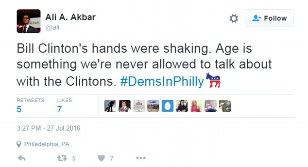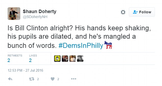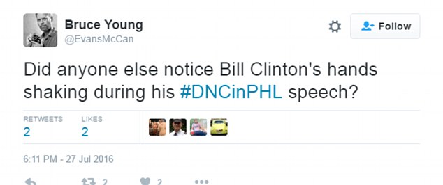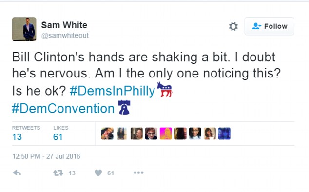 “Le mani di Bill Clinton tremano un po’. Dubito che sia nervoso. Sono l’unico che l’ha notato? Sta bene?”,