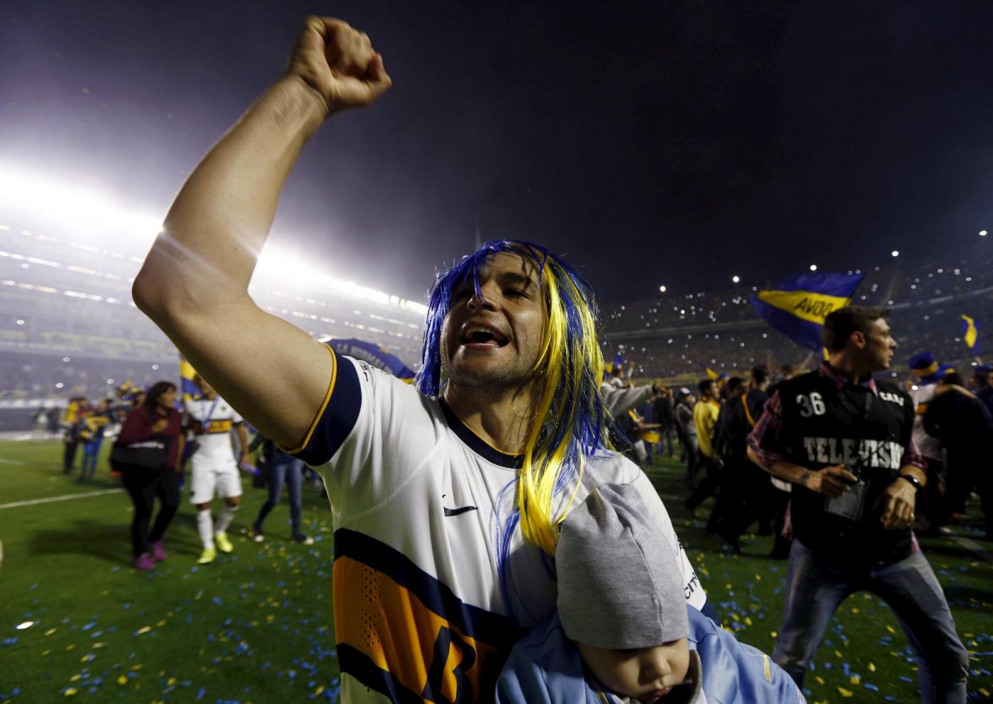 La gioia era ovviamente stata incontenibile già alla Bombonera, con il tutto esaurito e dove le Forze dell’ordine hanno faticato per limitare l’esuberanza dei tifosi. Celebrato soprattutto l’ex juventino Carlos Tevez, tornato con i gialloblù l’estate scorsa, a metà campionato. Con i “Xeneizes”, l’attaccante 31enne aveva già vinto il titolo d’Apertura nel 2003; quest’anno ha messo a segno cinque reti in 11 presenze. E mercoledì, per lui e il Boca sarà doblete se vinceranno anche la Coppa Argentina nella finale contro il Rosario Central (foto e video Reuters/LaPresse):