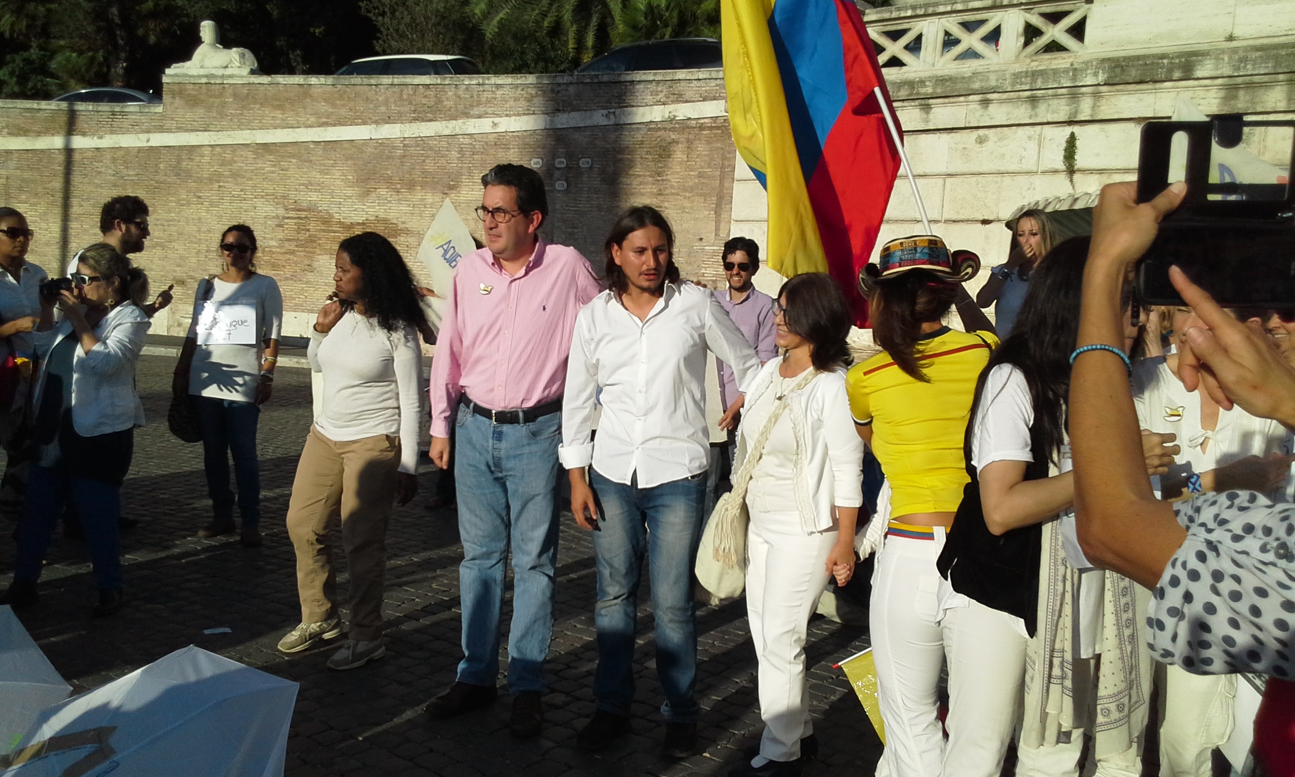 Durante il flash mob hanno preso la parola alcuni organizzatori che hanno spiegato le ragioni della manifestazione, il noto prete gesuita Francisco De Roux, l’ambasciatore e la console di Colombia in Italia.