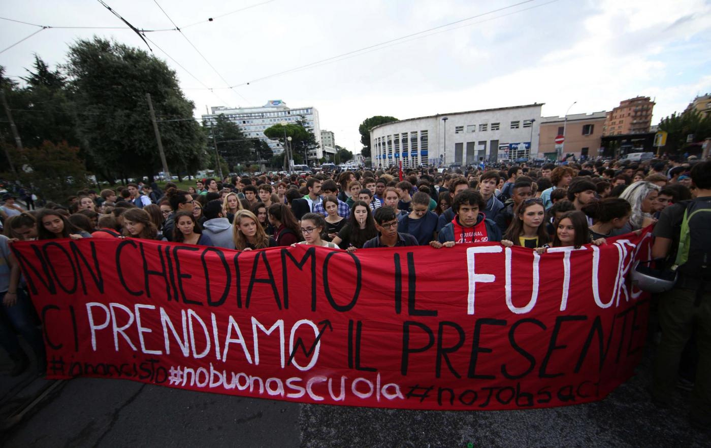 A Pisa invece, alcune decine di studenti medi superiori hanno manifestato stamani nel centro di Pisa contro la ‘Buona scuola’ scandendo slogan contro il governo e lanciando uova contro il palazzo della Provincia, accusata di non fare adeguata manutenzione agli edifici scolastici. Il corteo ha poi stazionato per alcuni minuti anche davanti alla sede provinciale del Pd lasciando cartelli e volantini contro la riforma. Nel mirino della protesta studentesca anche il ‘caro trasporti’ e un servizio pubblico locale ritenuto dai giovani “inadeguato alle esigenze scolastiche”. Il corteo è sorvegliato a distanza dalle forze dell’ordine ma di sta svolgendo in modo tutto sommato pacifico. Le foto della manifestazione di Roma (foto e video LaPresse).