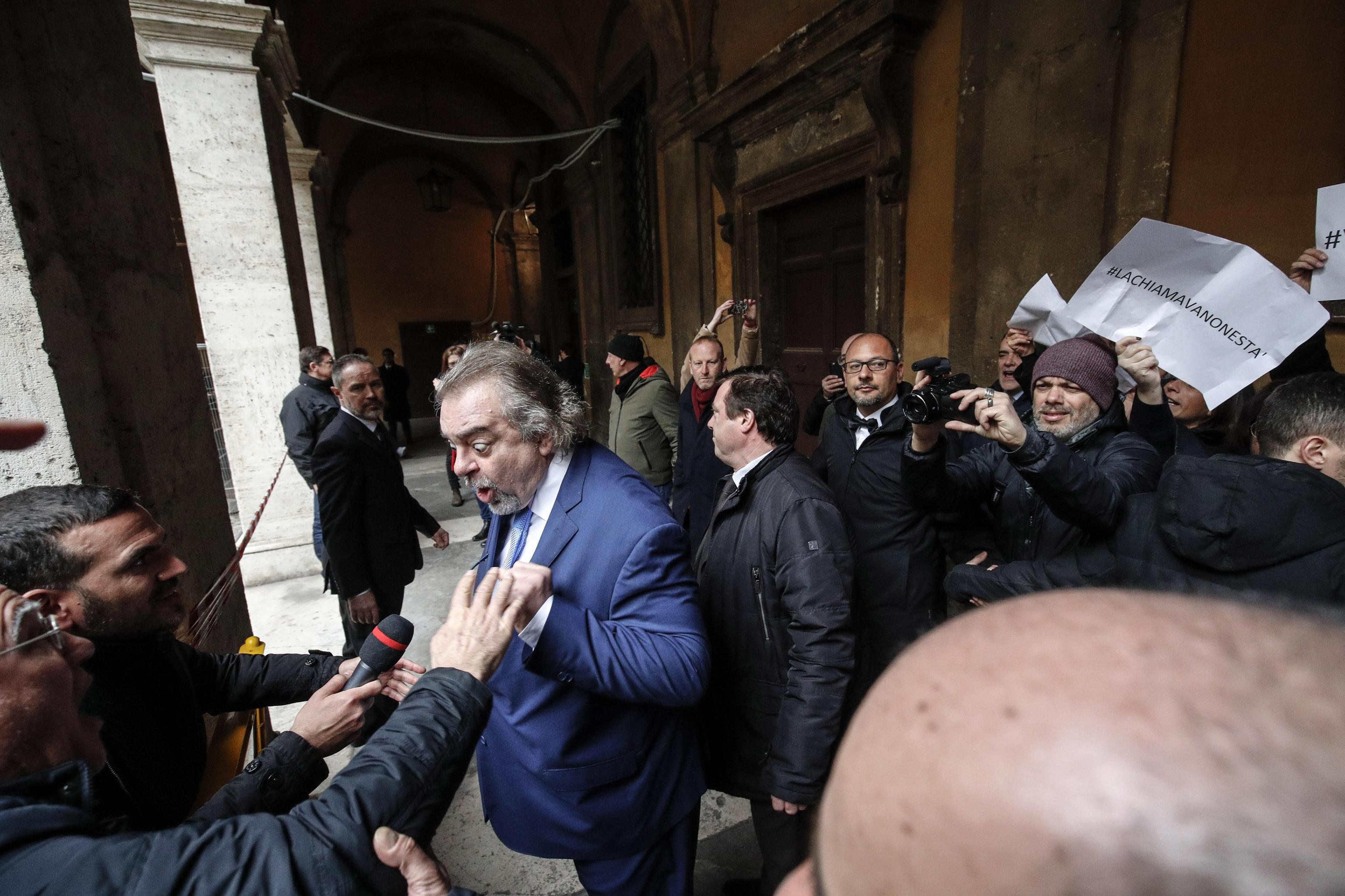 ROMA – La Giunta per le immunità del Senato dice no alla richiesta del tribunale di Catania e il Pd protesta fuori dalla Giunta con dei cartelli con su scritto frasi come “la chiavano onestà” e “decide Casaleggio”. Gli esponenti del Pd vedono uscire il grillino Michele Giarrusso e cominciano ad urlargli contro frasi tipo “burattino”. Il senatore pentastellato replica facendo prima il segno delle manette. Poi dichiara: “Loro sono agli arresti domiciliari, noi governiamo. Pazienza”. Il riferimento è ai genitori di Matteo Renzi, finiti proprio in queste ore agli arresti domiciliari.