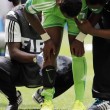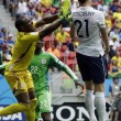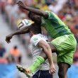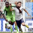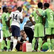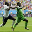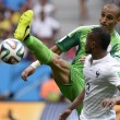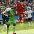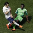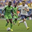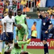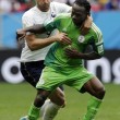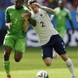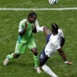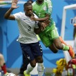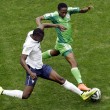 NIGERIA (4-2-3-1): Enyeama 4,5, Ambrose 5, Omeruo 5, Yobo 4,5, Oshaniwa 5, Onazi 5 (14′ st Gabriel), Obi Mikel 5, Musa 5, Odemwingie 5, Moses 44′ st Nwofor 6, Emenike 6. (16 Ejide, 21 Agbim, 14 Oboabona, 3 Uzoenyi, 6 Egwuekwe, 20 Uchebo, 12 Odunlami, 15 Azeez, 18 Babatunde, 23 Ameobi). All.: Keshi 5. Arbitro: Geiger (Stati Uniti) 6 Reti: 34′ st Pogba, 47′ st autogol di Yobo Angoli: 12-9 per la Francia Recupero: 2′ e 5′ Ammoniti: Matuidi per gioco falloso Espulsi: Spettatori: 40mila circa