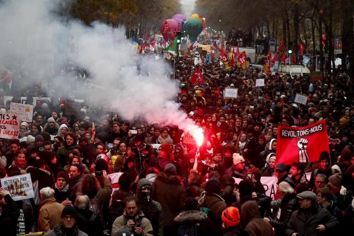 PARIGI – Come ci si attendeva, la Francia si è mobilitata in massa per lo sciopero e le proteste contro la riforma delle pensioni del presidente Emmanuel Macron: aerei a terra, treni e mezzi pubblici fermi, scuole e asili chiusi, ospedali solo per emergenze. Secondo le prime stime riportate dai media francesi sarebbero oltre 180mila i manifestanti scesi in strada in almeno una trentina di città. Ed oltre ai semplici cittadini, ai sindacati, agli “cheminot” (i lavoratori delle ferrovie presi di mira dalla riforma) e i Gilets jaunes anche alcune centinaia di black bloc si sono fatti sentire, e sono stati accolti da lanci di lacrimogeni nel centro della capitale.