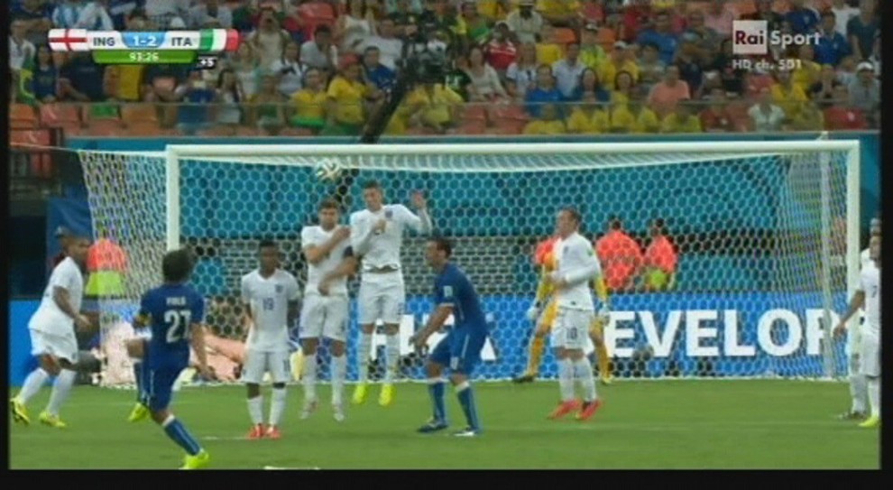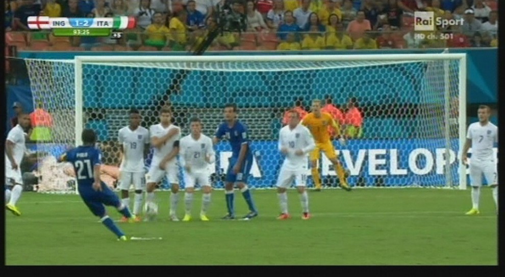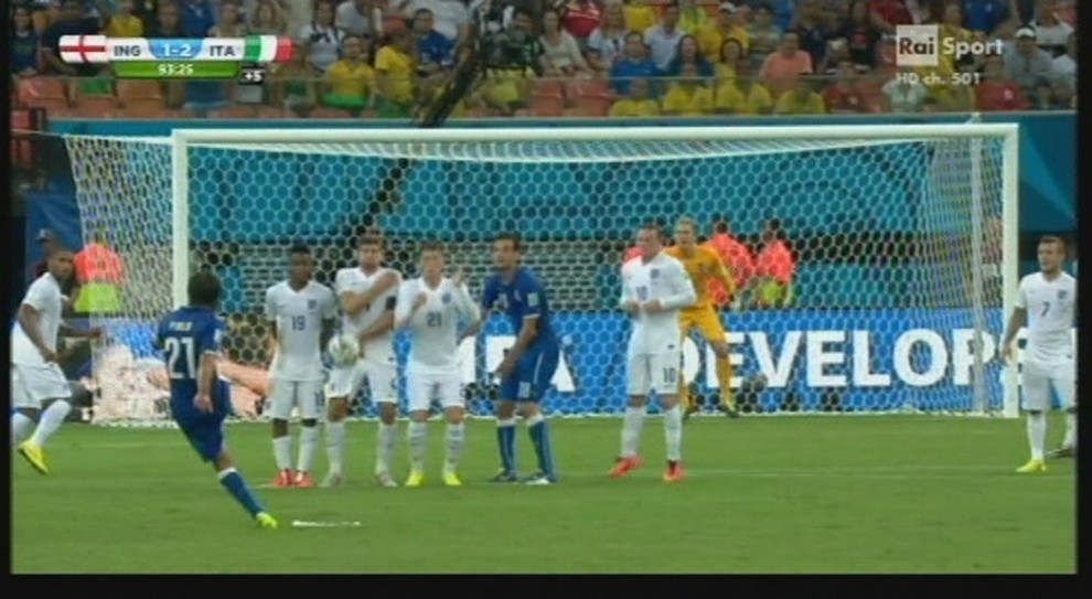 MANAUS (BRASILE) – “Wow”: il portiere dell’Inghilterra, Joe Hart, finita la partita, si complimenta con Andrea Pirlo per la punizione, la maledetta che ha colpito la traversa.