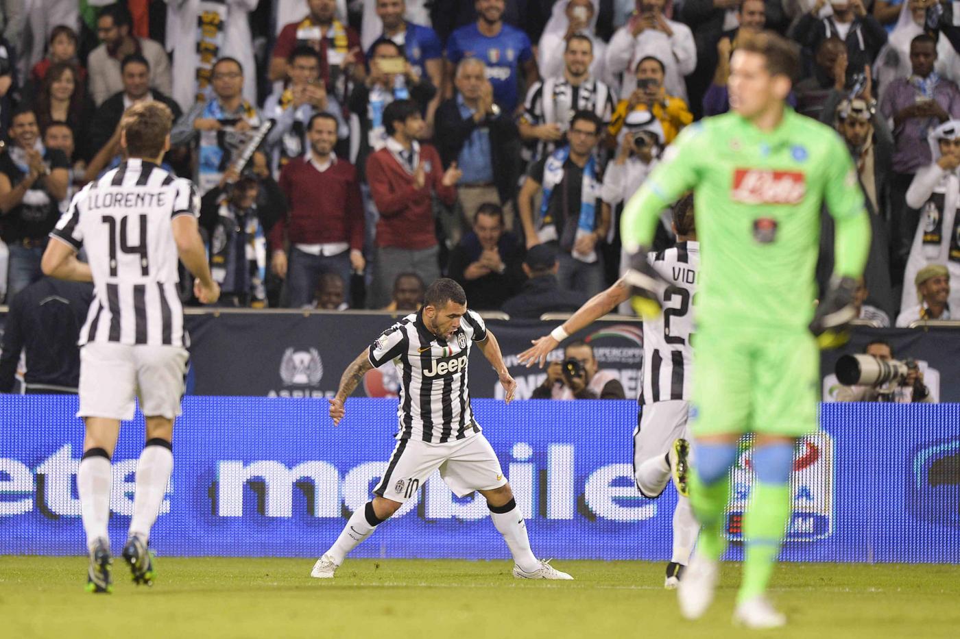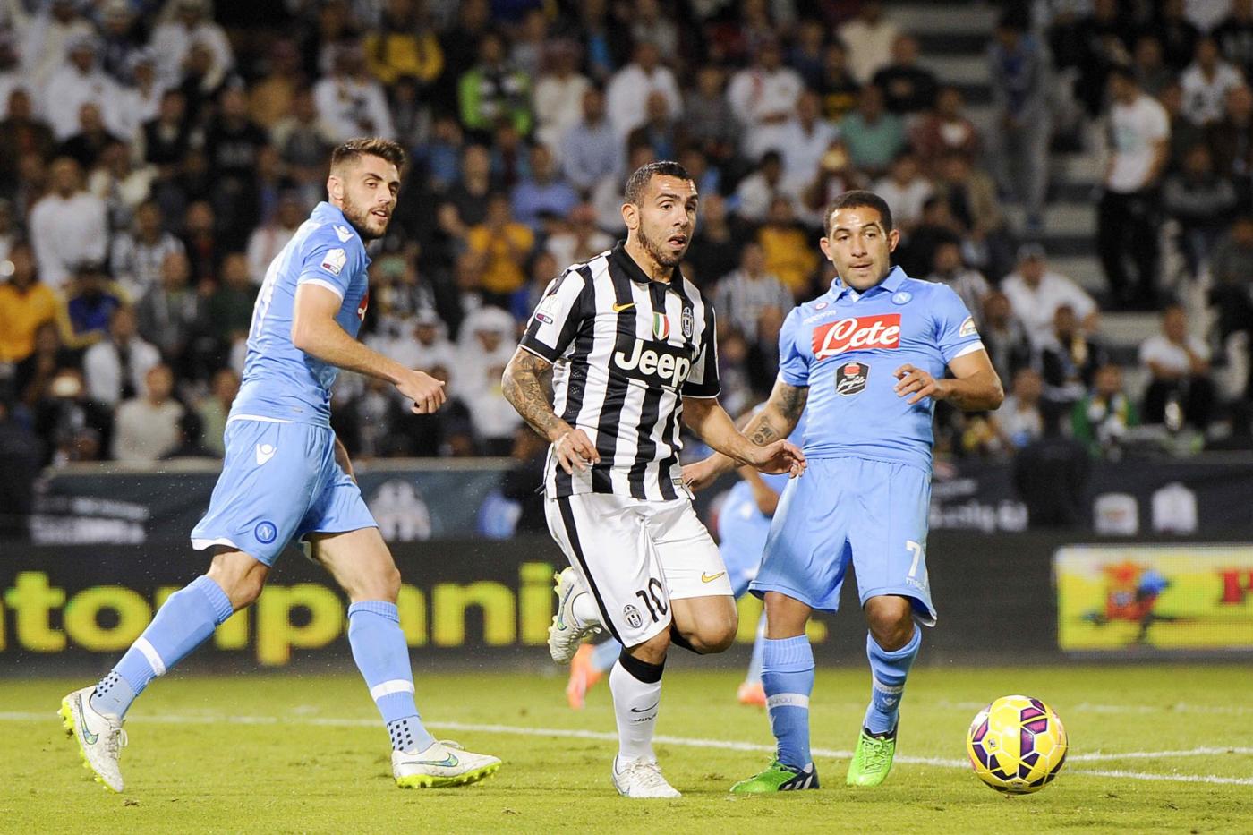 Napoli (4-2-3-1): Rafael; Maggio, Albiol, Koulibaly, Ghoulam; David Lopez (1′ pts Inler), Gargano; Callejon, Hamsik (33′ st Mertens), De Guzman (1′ sts Jorginho); Higuain. (45 Andujar, 4 Henrique, 5 Britos, 15 Colombo, 16 Mesto, 22 Radosevic, 60 Romano, 91 Zapata). All.: Benitez. Arbitro: Valeri di Roma Reti: nel pt 5′ Tevez; nel st 23′ Higuain; nel sts 2′ Tevez. 13′ Higuain