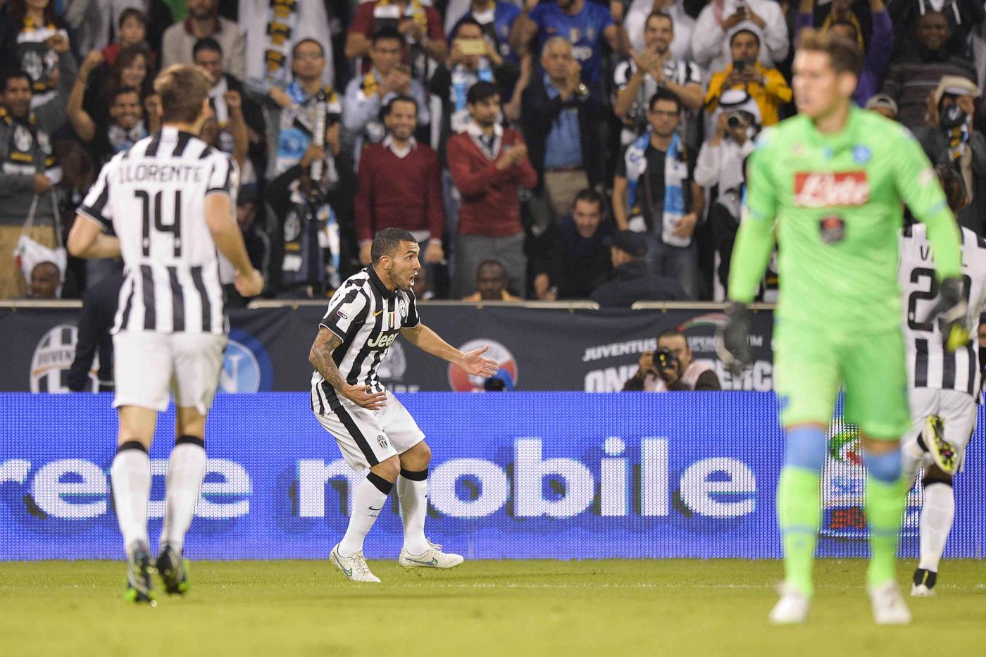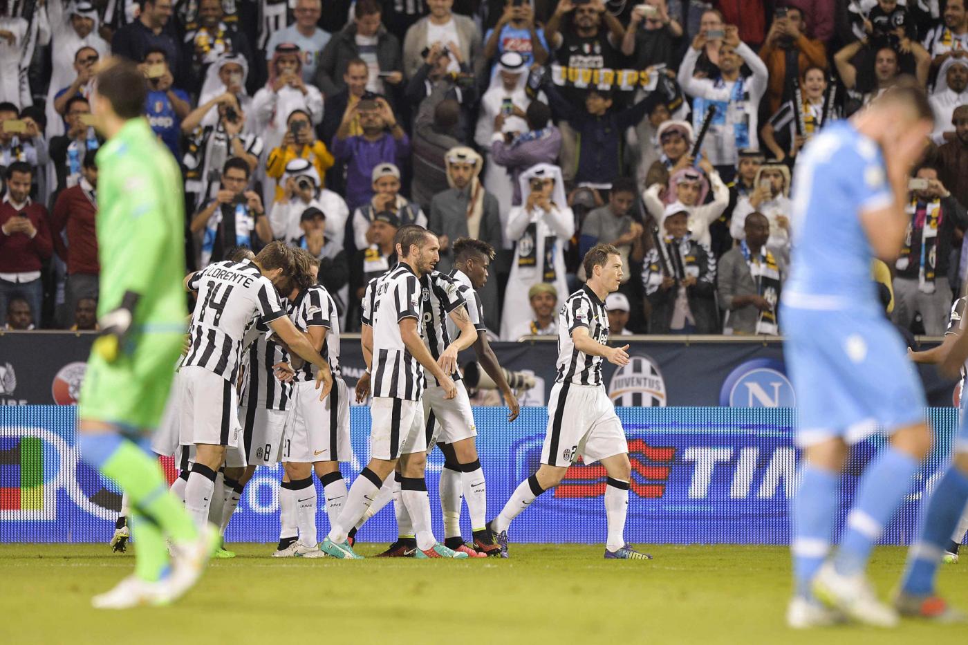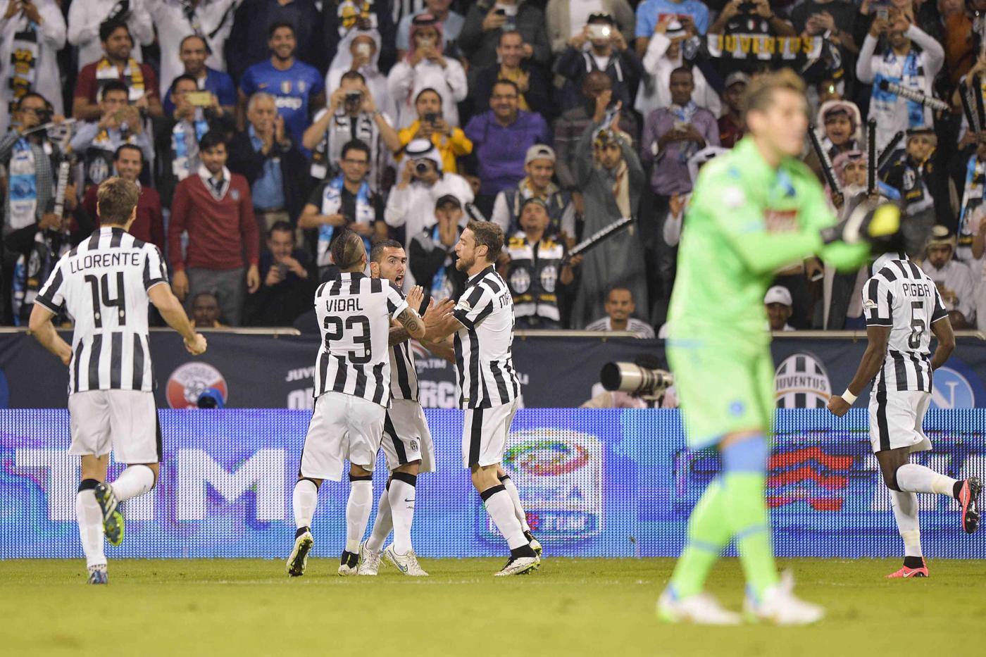 Sequenza rigori: Jorginho (parato), Tevez (palo), Ghoulam (gol), Vidal (gol), Albiol (gol), Pogba (gol), Inler (gol), Marchisio (gol), Higuain (gol), Morata (gol), Gargano (gol), Bonucci (gol), Mertens (parato), Chiellini (parato), Callejon (parato), Pereyra (alto), Koulibaly (gol), Padoin (parato) Angoli: 8-3 per la Juventus Recupero: 1′ e 2′; 0′ e 0′ Ammoniti: Higuain, Callejon, Mertens, Pereyra, Albiol, Ghoulam per gioco falloso, Tevez per comportamento antiregolamentare Spettatori: 15.000