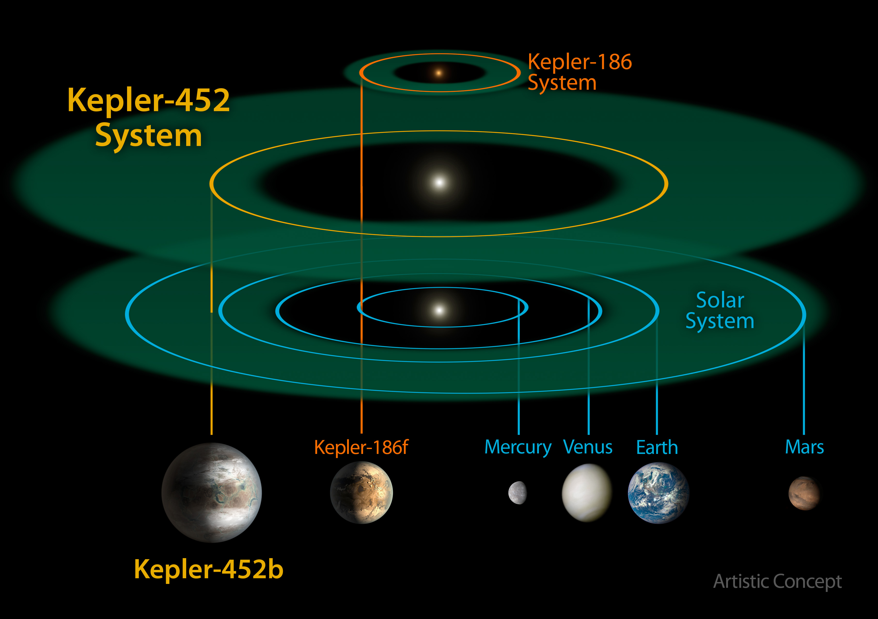 Kepler 452b è il primo pianeta dalle dimensioni simili alla Terra che si trova nella “zona abitabile“, cioè ad una distanza dalla sua stella che potrebbe essere ottimale per la vita come la conosciamo, e il suo periodo di rivoluzione è di 385 giorni, appena il 5% in più dei 365 giorni impiegati dalla Terra a percorrere la sua orbita.