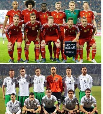 Le formazioni ufficiali di Belgio-Irlanda. BELGIO (4-2-3-1): Courtois, Meunier, Alderweireld, Vermaelen, Vertonghen; Dembelè, Witsel; Kevin De Bruyne, Hazard, Carrasco; Lukaku. Allenatore: Wilmots.