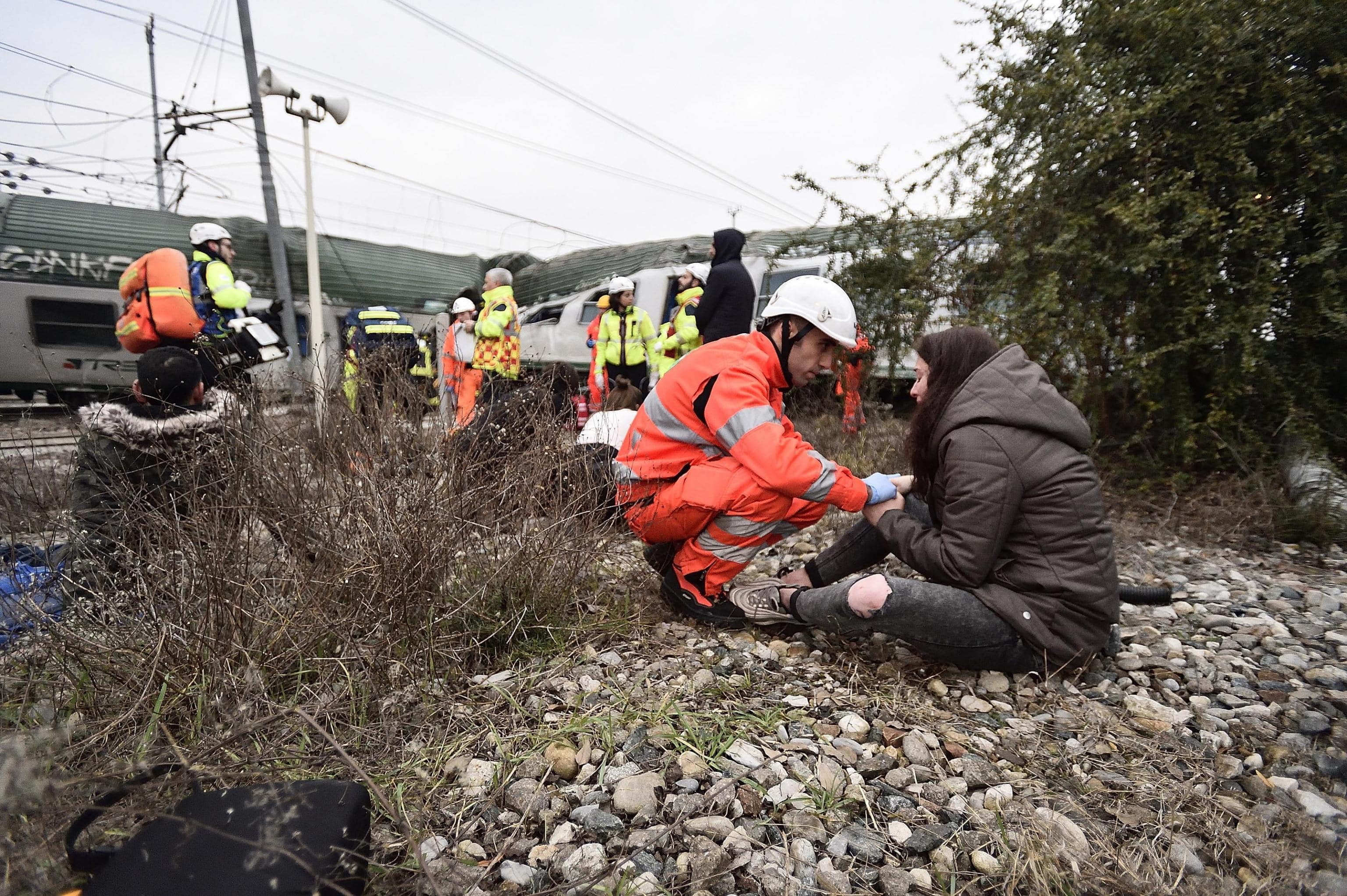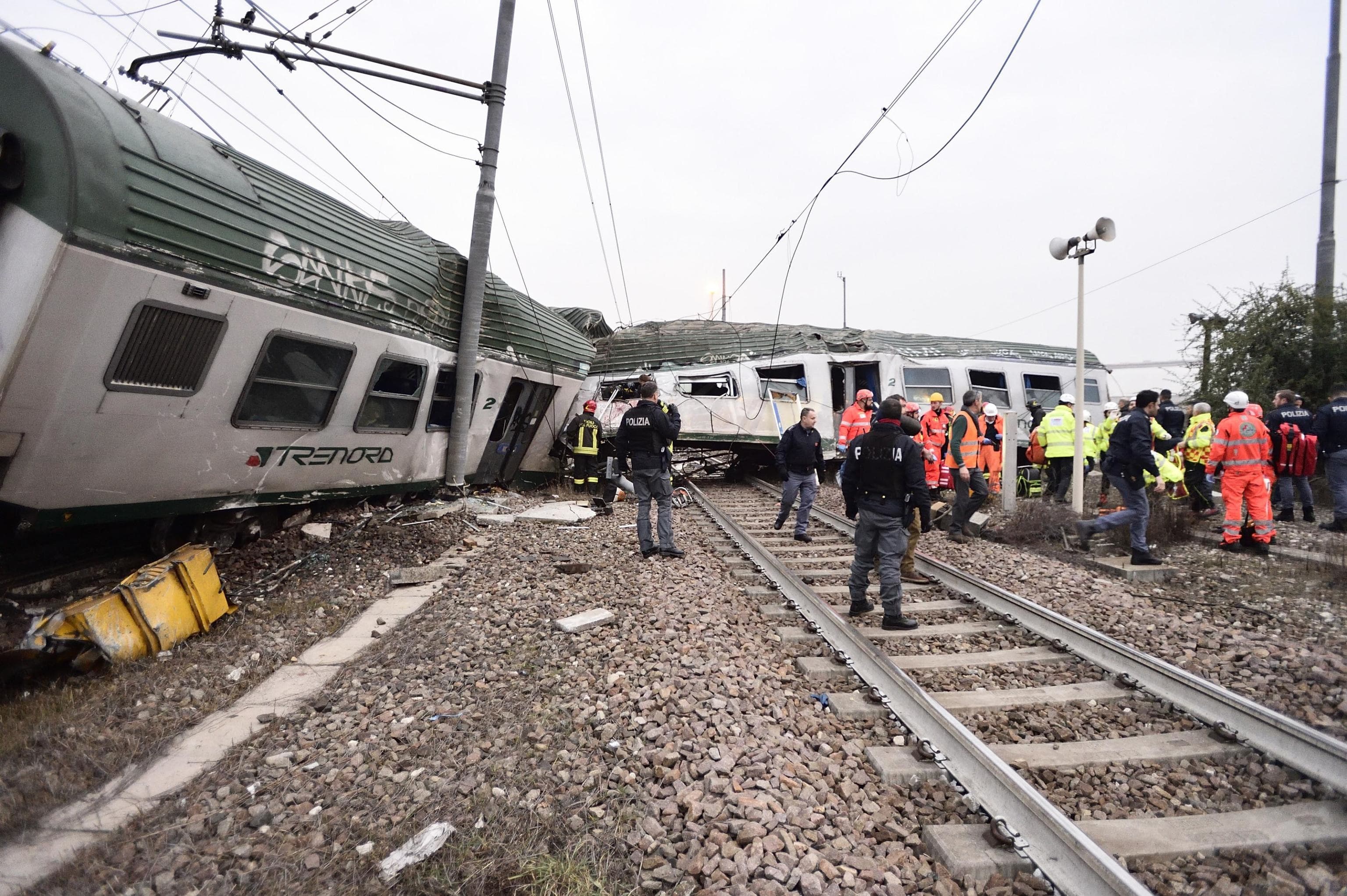 MILANO – Vigili del Fuoco al lavoro all’interno di una carrozza del treno Trenord deragliato tra Pioltello e Segrate.