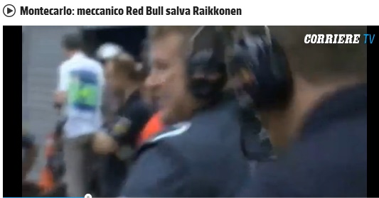 MONTECARLO – Il meccanico Red Bull che salva la vita a Raikkonen. Per sua fortuna, Kimi Raikkonen ha trovato un angelo custode della Red Bull, uno sveglio meccanico che lo ha spinto via dalla pista verso i box: giusto un attimo prima che una monoposto dei rivali della Ferrari partisse a tutta birra per il suo giro di prova, rischiando di travolgere il distratto pilota finlandese.