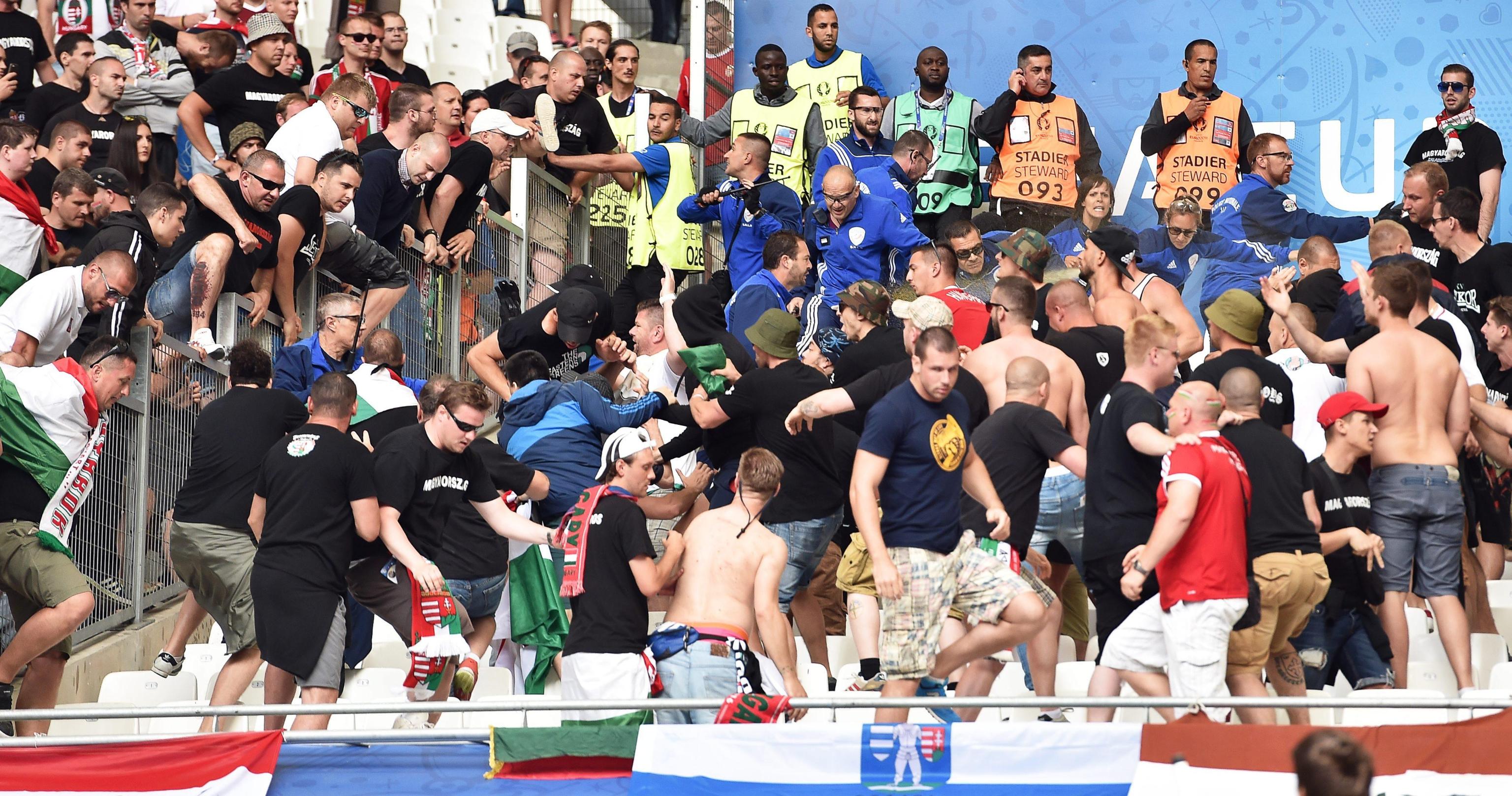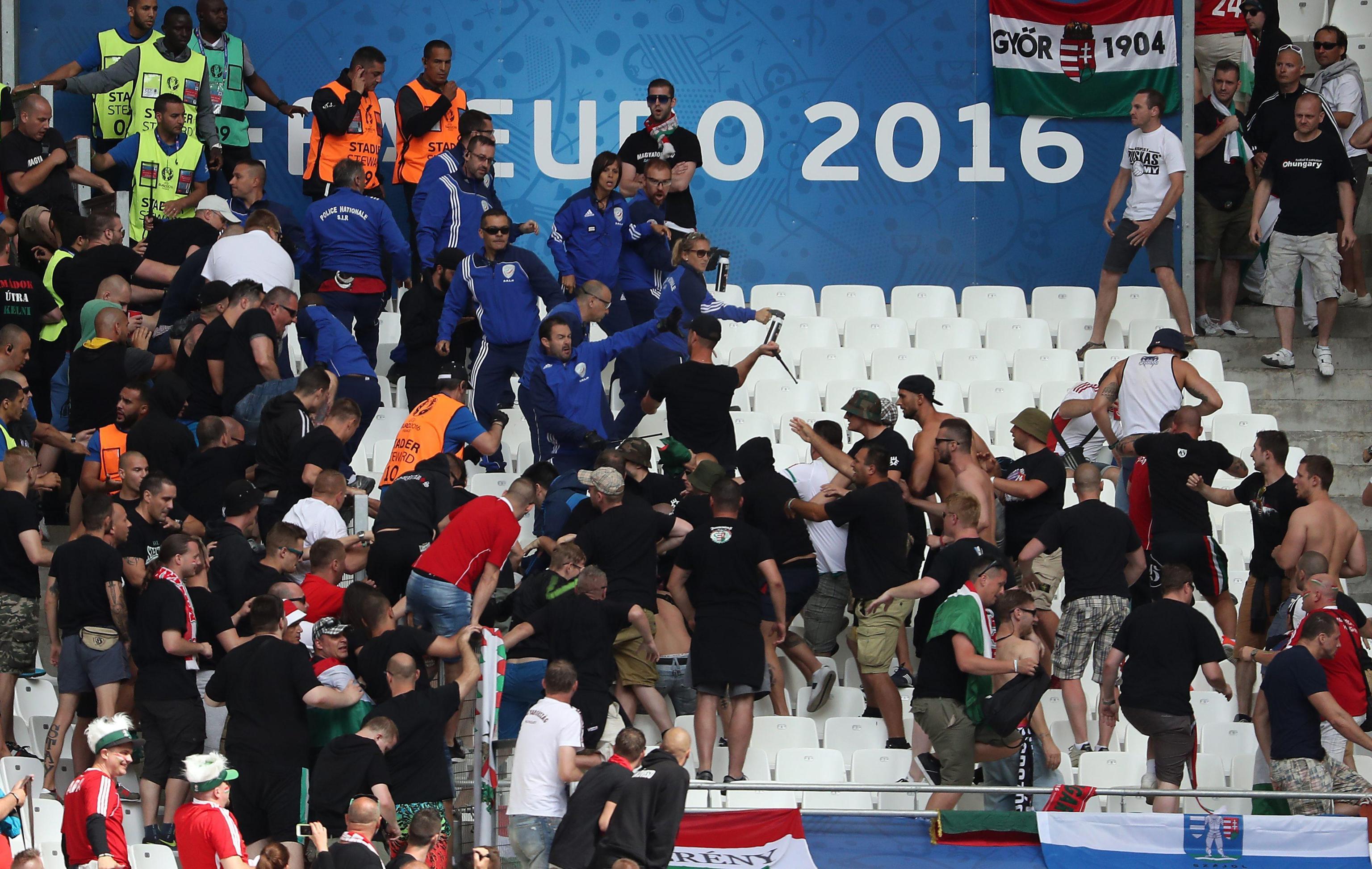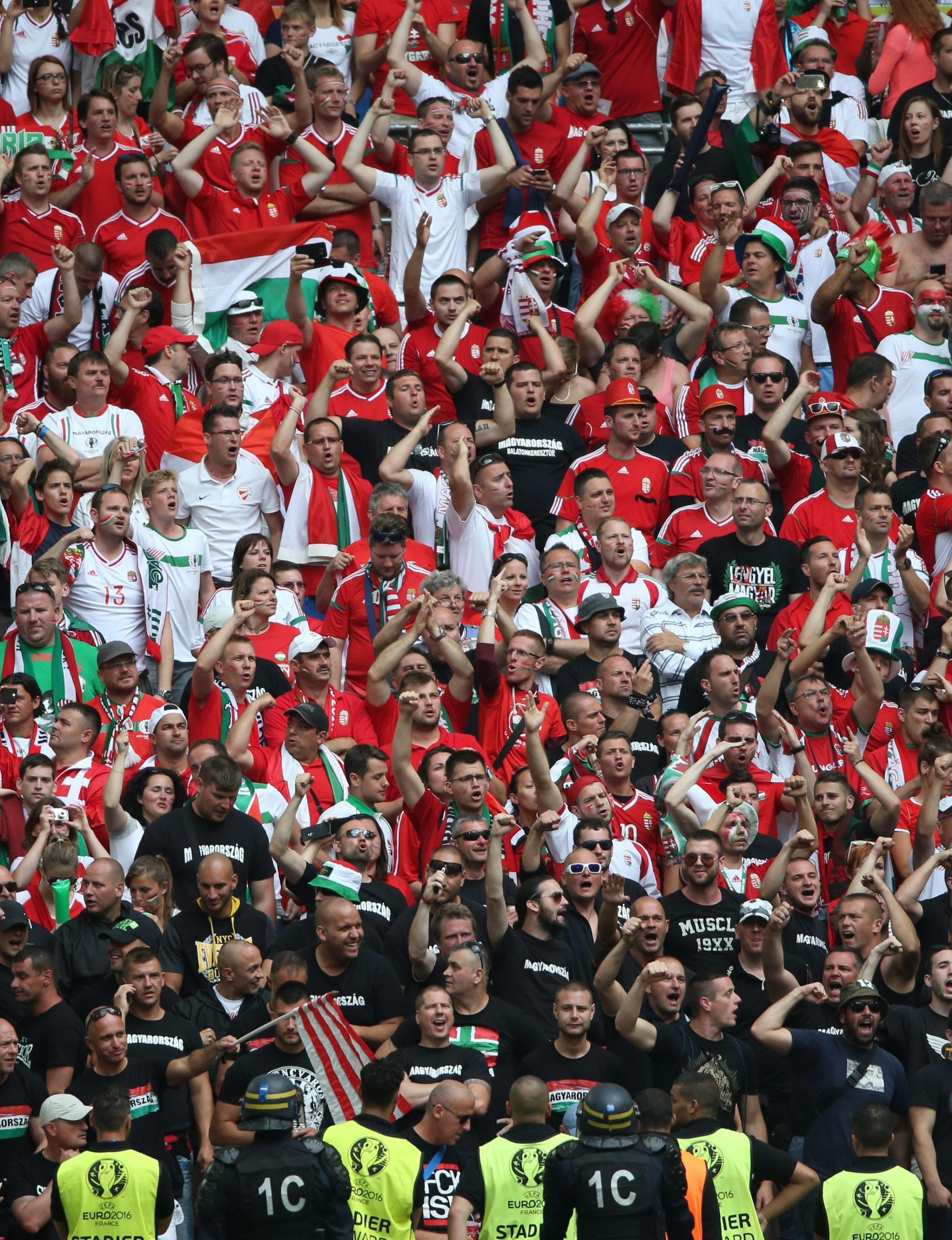 EPA/ALI HAIDER Ungheresi sugli spalti del Velodrome di Marsiglia EPA/OLIVER WEIKEN Festa ungherese dopo il gol EPA/ALI HAIDER Scontri fra ungheresi e polizia francese EPA/PETER POWELL Hooligan ungherese EPA/PETER POWELL Ungheresi sugli spalti del Velodrome di Marsiglia EPA/PETER POWELL Scontri fra ungheresi e polizia francese EPA/GUILLAUME HORCAJUELO Ungheresi per le strade di Marsiglia prima di Ungheria-Islanda EPA/GUILLAUME HORCAJUELO