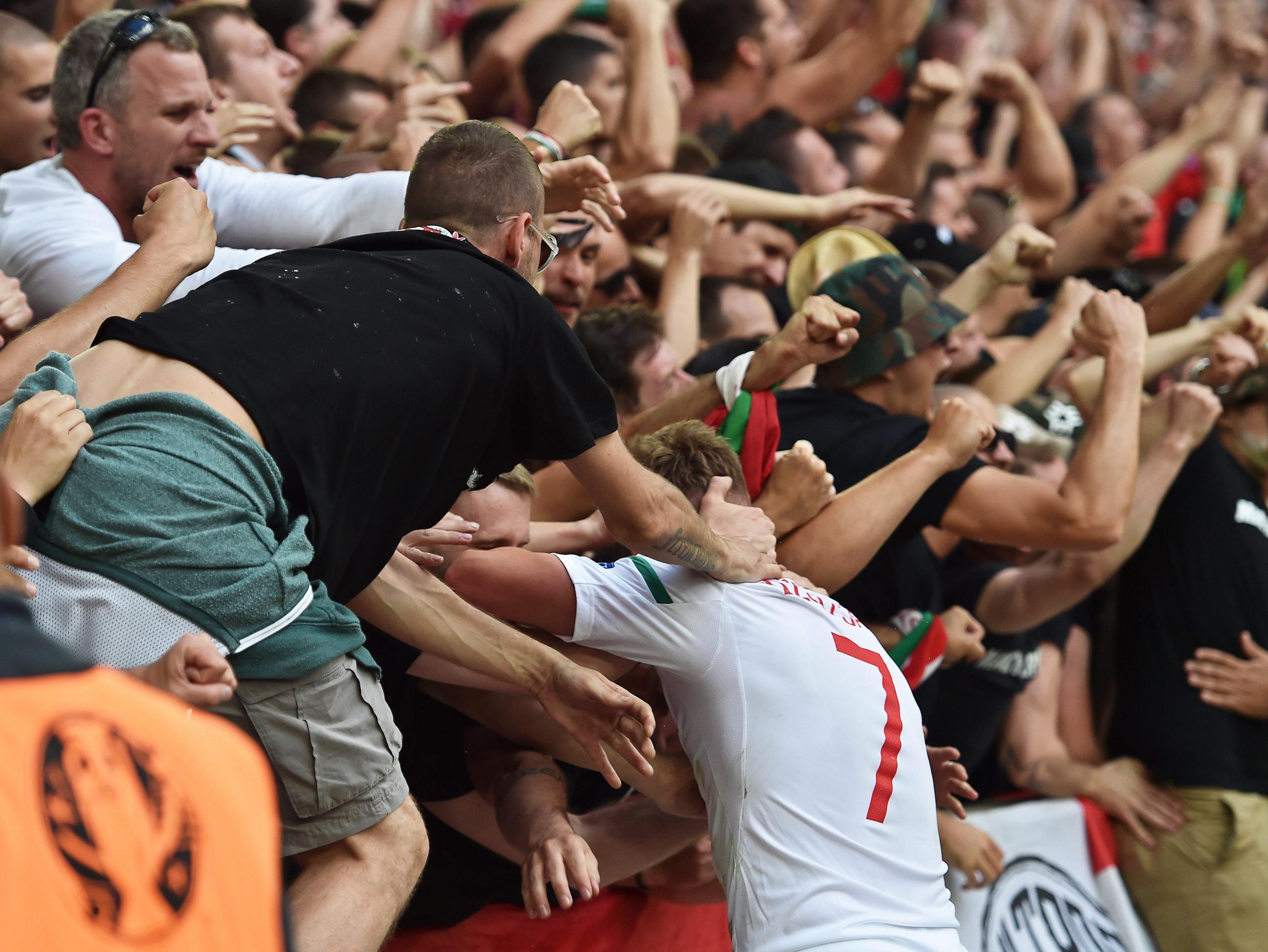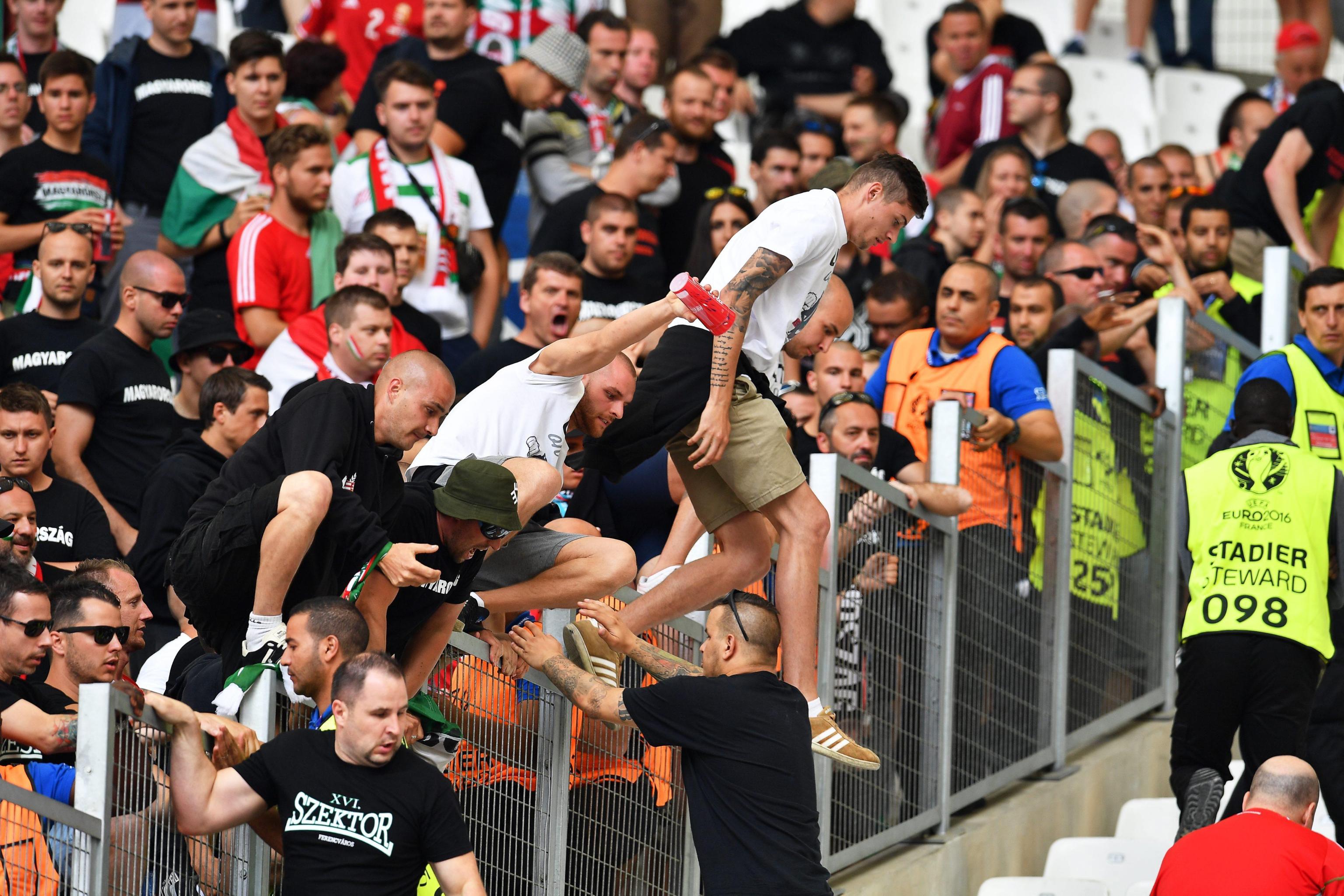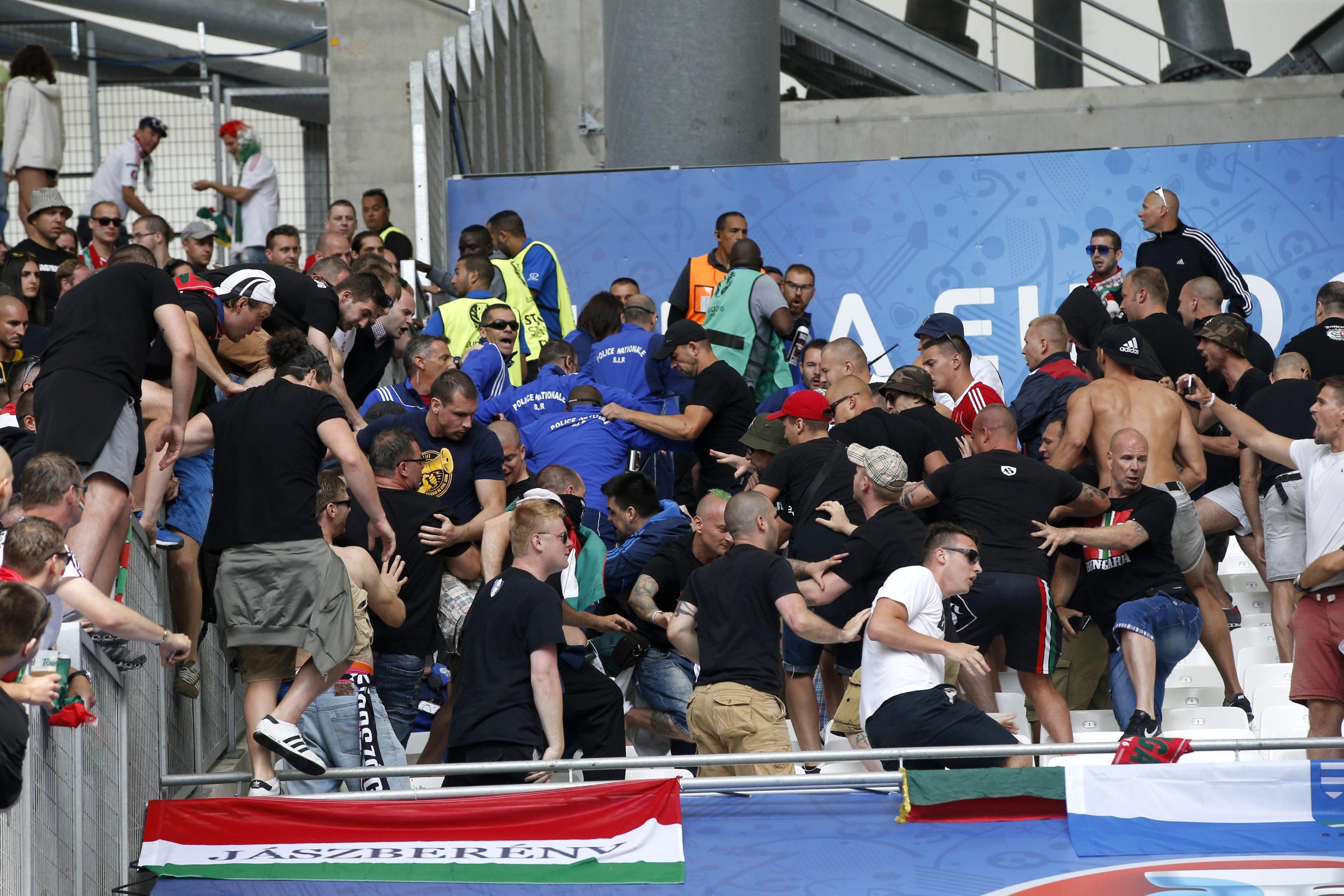 EPA/ALI HAIDER Ungheresi sugli spalti del Velodrome di Marsiglia EPA/OLIVER WEIKEN Festa ungherese dopo il gol EPA/ALI HAIDER Scontri fra ungheresi e polizia francese EPA/PETER POWELL Hooligan ungherese EPA/PETER POWELL Ungheresi sugli spalti del Velodrome di Marsiglia EPA/PETER POWELL Scontri fra ungheresi e polizia francese EPA/GUILLAUME HORCAJUELO Ungheresi per le strade di Marsiglia prima di Ungheria-Islanda EPA/GUILLAUME HORCAJUELO