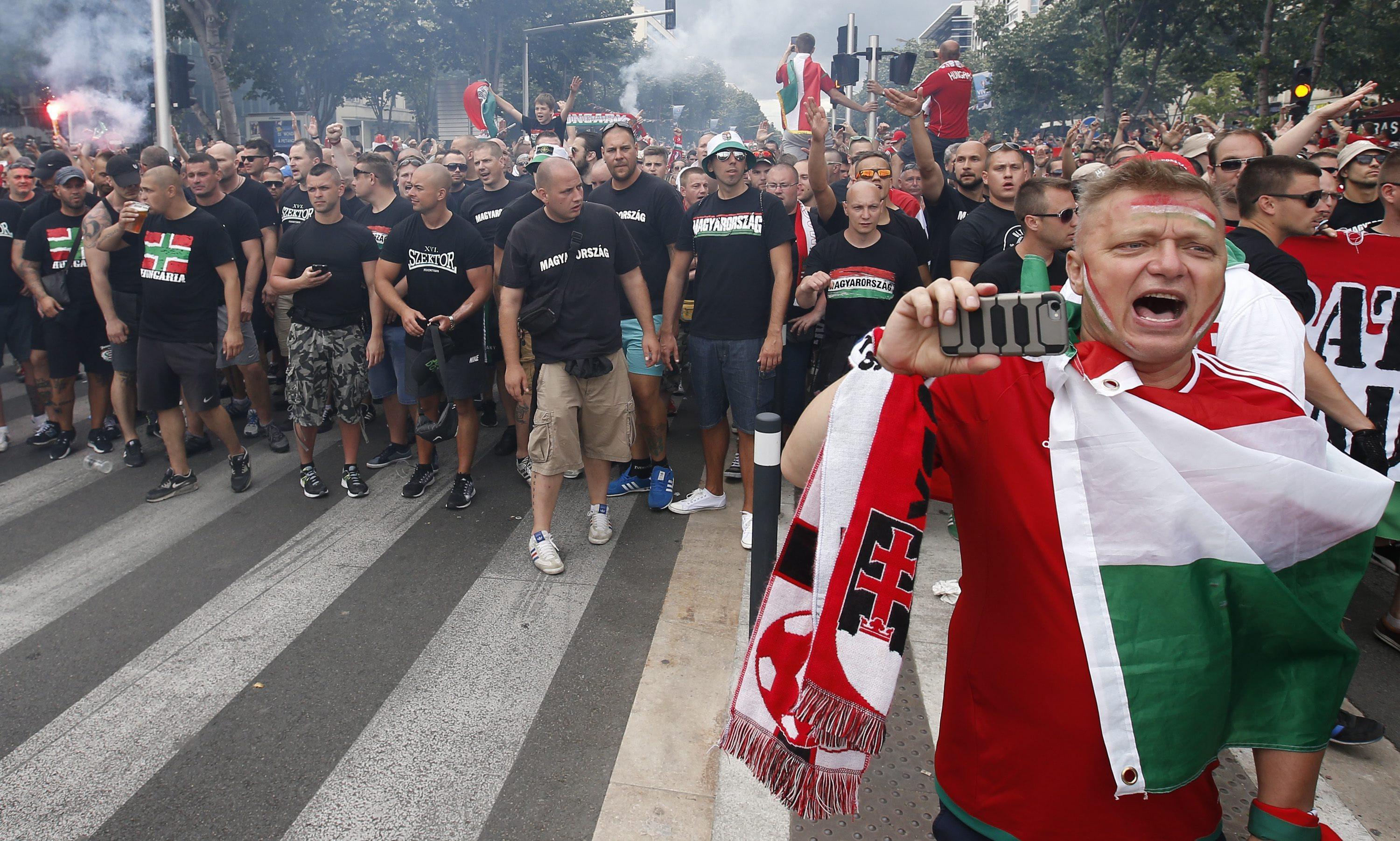 EPA/OLIVER WEIKEN Scontri fra ungheresi e polizia francese EPA/PETER POWELL Ungheresi sugli spalti del Velodrome di Marsiglia EPA/GUILLAUME HORCAJUELO Festa ungherese EPA/GUILLAUME HORCAJUELO Scontri fra ungheresi e polizia francese EPA/PETER POWELL Festa ungherese Hungary’s