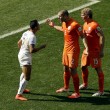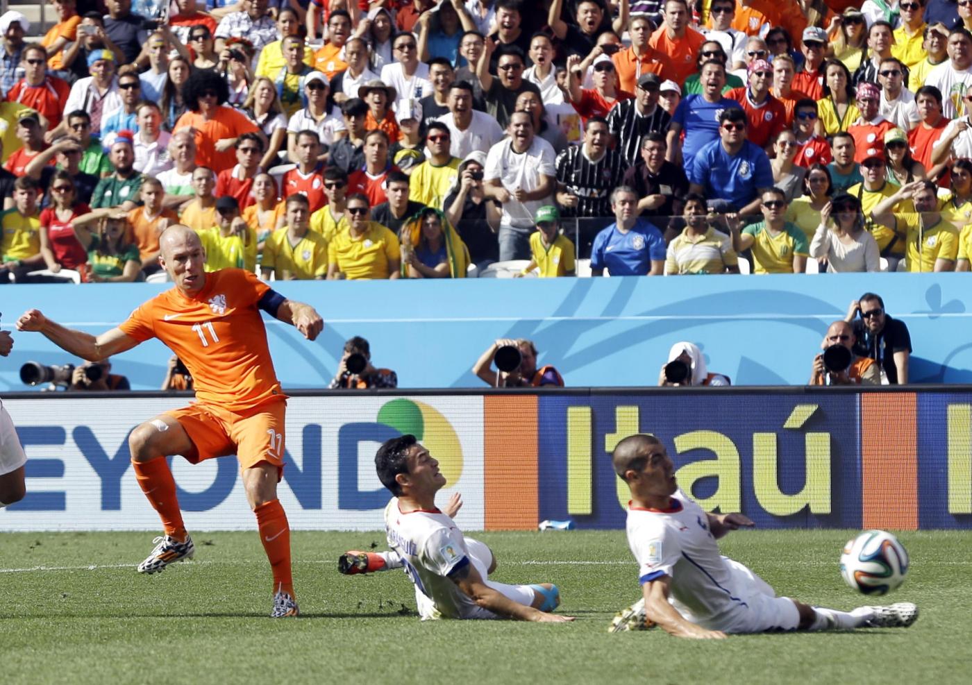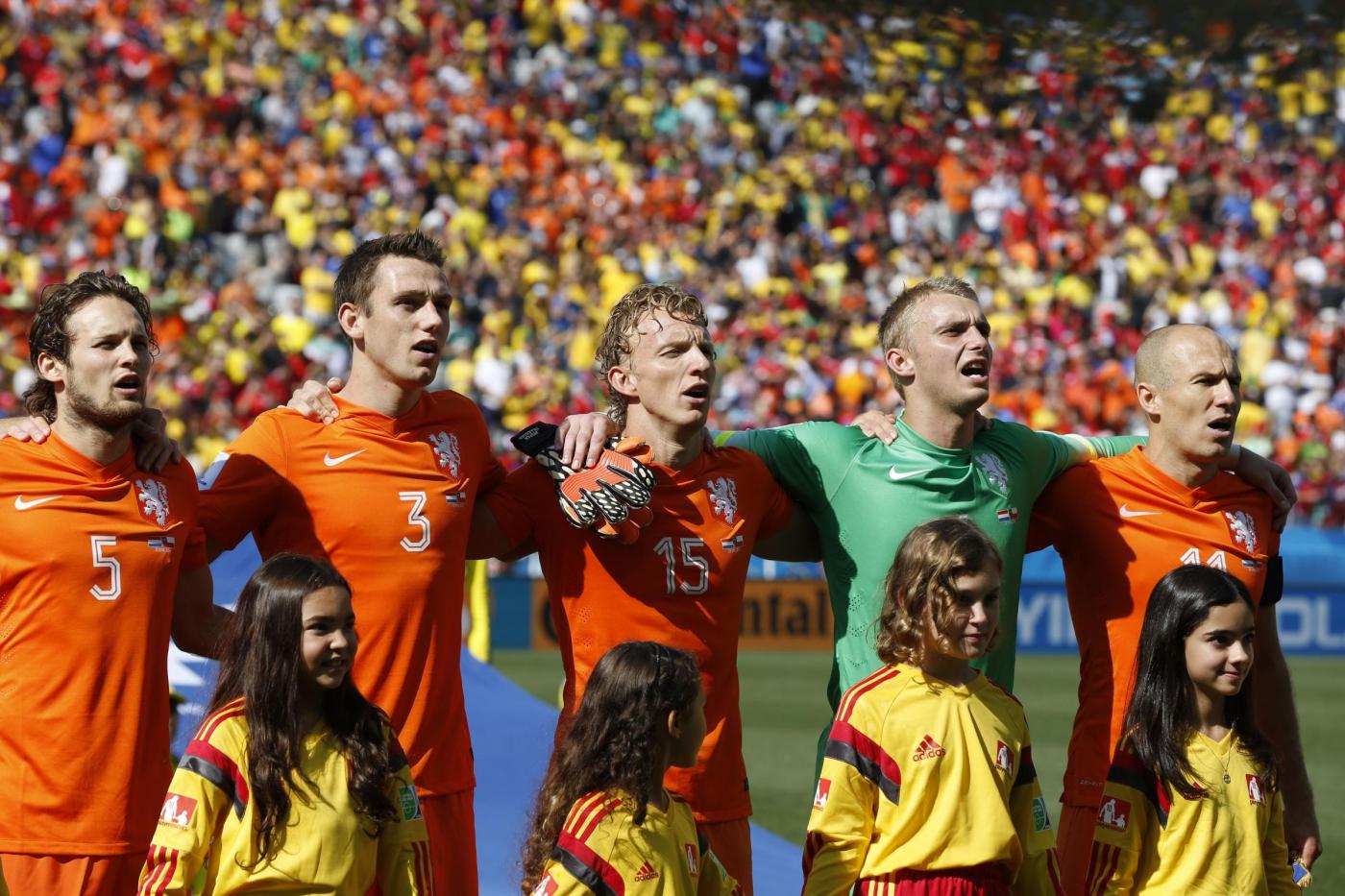 Olanda (4-3-3): Cillessen 6, Janmaat 6.5, De Vrij 6.5, Vlaar 6, Blind 5.5, Wijnaldum 6, De Jong 7, Snejder 6 (31′ st Fer 6.5), Kuyt 6 (44′ st Kongolo sv), Robben 7.5, Lens 5.5 (24′ st Depay 7). (22 Vorm, 23 Krul, 8 De Guzman, 12 Verhaegh, 13 Veltman, 16 Clasie, 18 Norwich). All.: Van Gaal 7.5.
