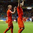Olanda (3-4-3): Cillessen 6 (15′ sts Krul 8); De Vrij 6, Vlaar 6.5, Indi Martins 6 (1′ sts Huntelaar s.v.); Kuyt 6.5, Wijnaldum 6, Sneijder 7, Blind 6.5; Depay 5 (30′ st Lens 6), Van Persie 6, Robben 7. (22 Vorm, 7 Janmaat, 8 De Guzman, 12 Verhaegh, 13 Veltman, 14 Kongolo, 16 Claasie, 10 Leroy Fer). All.: Van Gaal 7.5.