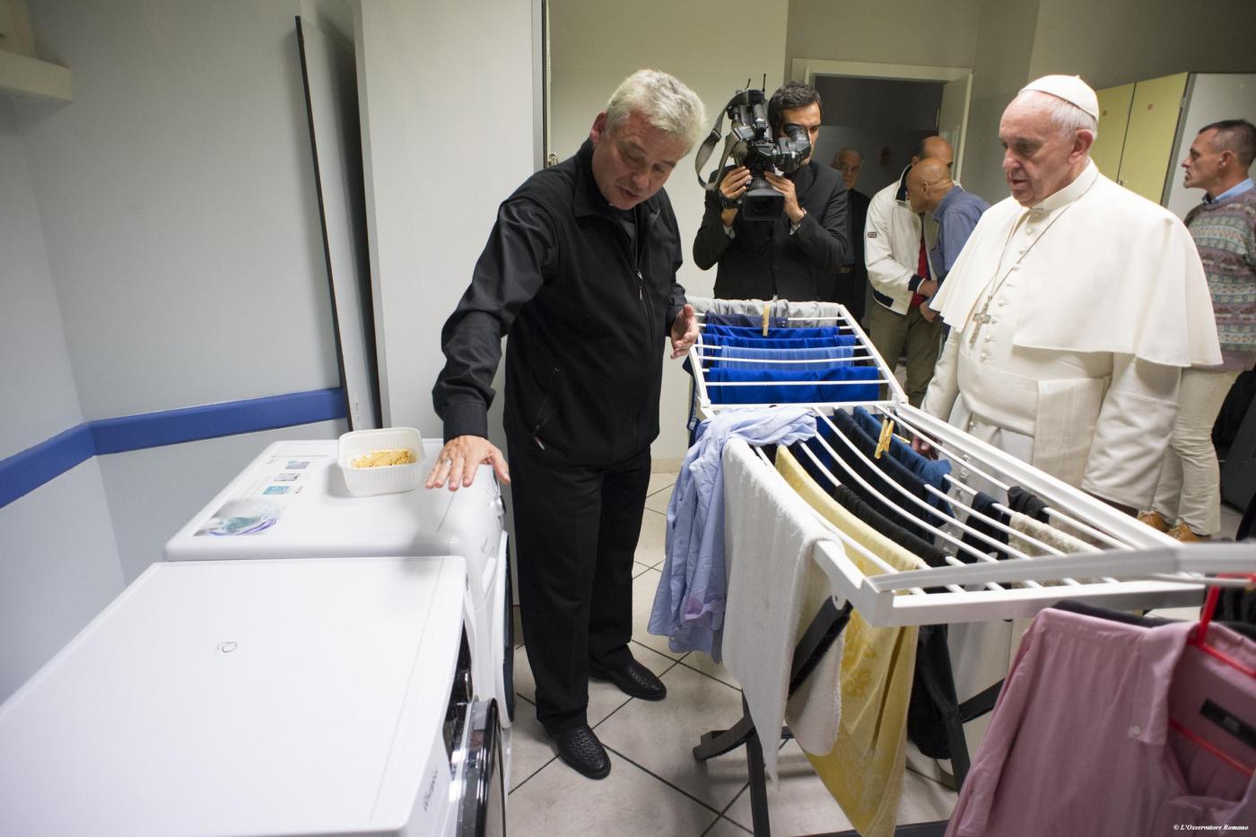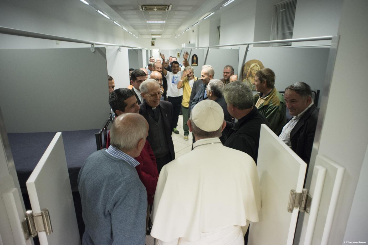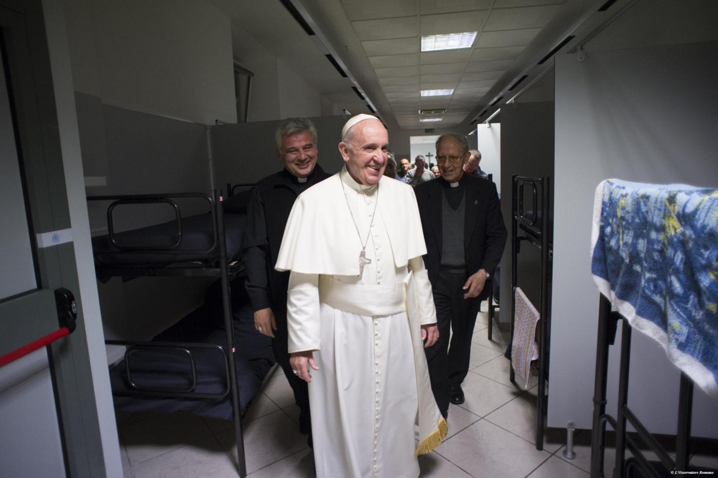 I locali sono stati messi a disposizione dalla Casa Generalizia della Compagnia di Gesù. Bergoglio ha salutato singolarmente tutti gli ospiti, una trentina, che erano riuniti nella saletta comune e che poi si sono disposti vicino ai loro letti mentre il Papa visitava il dormitorio e gli altri locali di servizio. Francesco si è trattenuto cordialmente per una ventina di minuti con gli ospiti, visibilmente commossi, riferisce sempre il bollettino vaticano, e felici della sua visita. Il Dormitorio era stato inaugurato il 7 ottobre scorso e sta già funzionando regolarmente. È gestito dall’Elemosineria Apostolica e può ospitare fino a 34 uomini, che vi potranno pernottare per un massimo di trenta giorni, usufruendo della cena offerta presso la vicina Casa “Dono di Maria”, in Vaticano, gestita sempre dalle suore di Madre Teresa, che offre 50 posti letto per le donne (foto e video LaPresse/Osservatorio Romano).