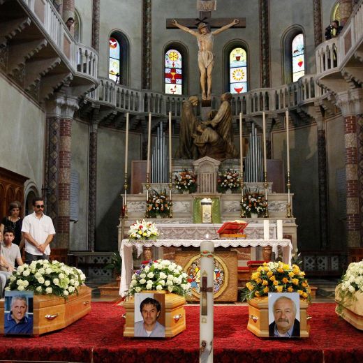 REFRONTOLO (TREVISO) – Funerali a Pieve di Soligo: il paese del trevigiano colpito dalla bomba d’acqua di Refrontolo piange Maurizio Lot, Luciano Stella, Giannino Breda e Fabrizio Bortolin, le vittime del disastro naturale.