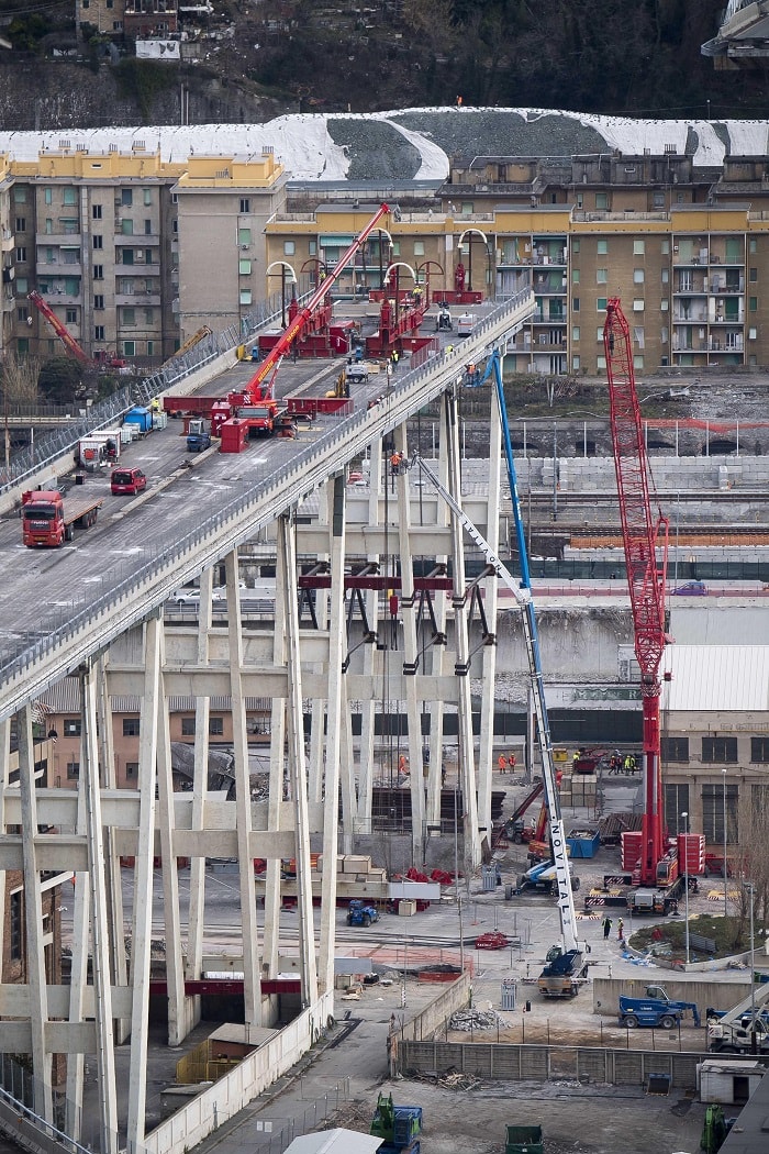 I tecnici hanno agganciato agli strand jack l’impalcato pesante 800 tonnellate e lungo 36 metri, ed hanno cominciato a farlo scendere a terra. Alle complesse operazioni assistono, oltre al commissario per la ricostruzione e sindaco Marco Bucci e al governatore Giovanni Toti, il premier Giuseppe Conte, il ministro delle infrastrutture Danilo Toninelli, il viceministro Edoardo Rixi.