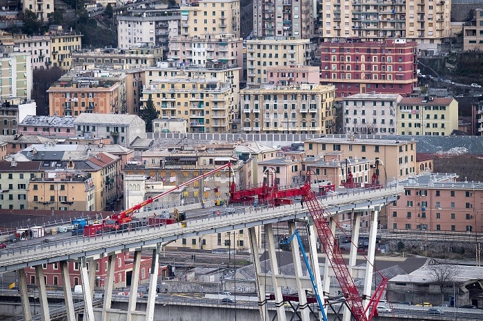 Ponte Morandi, via a demolizione moncone ovest (foto Ansa)