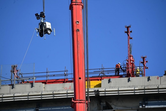 GENOVA – Sono iniziate a Genova le operazioni di taglio dei “denti” che trattengono l’impalcato del moncone ovest di Ponte Morandi, impalcato che sarà calato a terra in un’operazione che durerà circa 8 ore. Sul cantiere sono presenti circa 60 operai delle aziende Omini e Fagioli che, assieme alla Ipe progetti, sono incaricate della demolizione del Morandi.