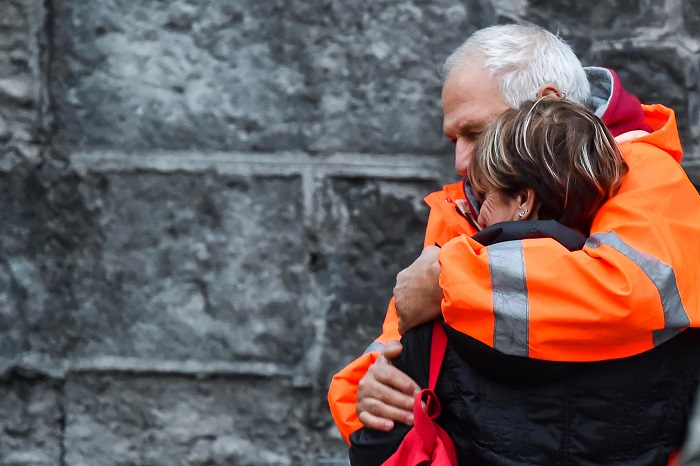 Un’altra sfollata ha avuto un momento di sconforto, è scoppiata a piangere e ha interrotto la visita in casa. A causa della emozione è stata costretta ad abbandonare l’abitazione e a uscire in strada, dove è stata assistita dai vigili del fuoco. La donna poi si è ripresa e ha fatto rientro in casa.