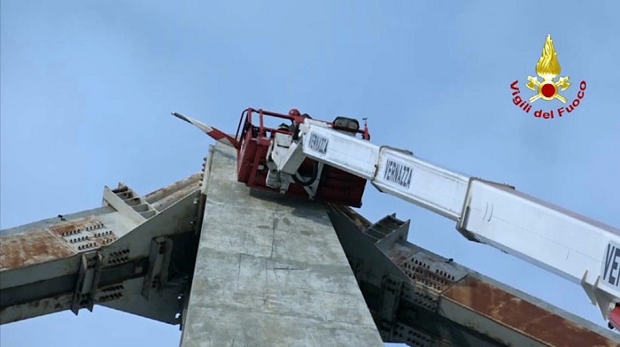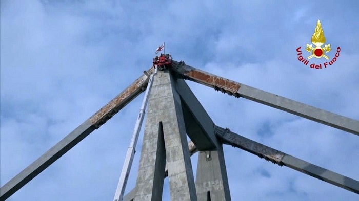 I Vigili del Fuoco, hanno intanto compiuto un gesto di “omaggio alla città e ai suoi abitanti”, posizionando sulla sommità del pilone del Ponte Morandi la bandiera della città. Si tratta di un’iniziativa simbolica, fatta in accordo con il Comune e la Regione, nell’ambito del lavoro di posizionamento dei sensori che dovranno monitorare la stabilità dei monconi del viadotto.