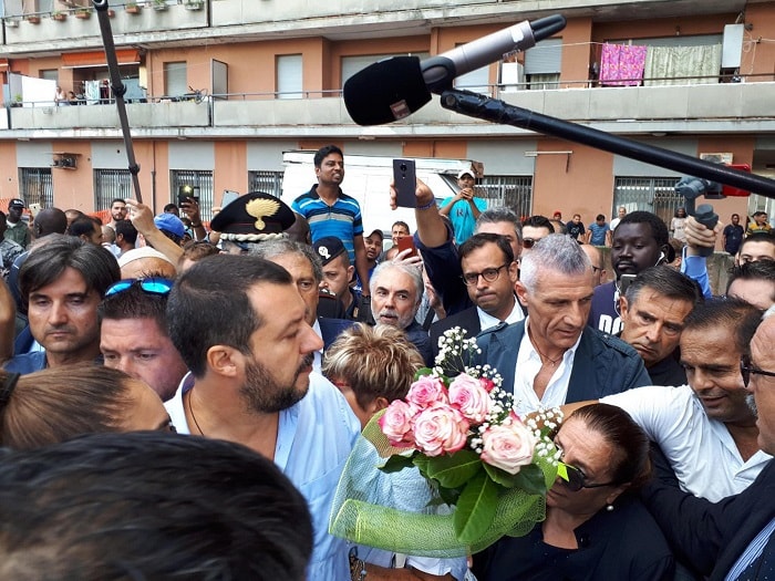 Accompagnato dai vertici delle forze dell’ordine (carabinieri, polizia, guardia di finanza) e dal sindaco Roberto Mozzicafreddo, Salvini ha incontrato l’amministratore straordinario dell’immobile, che conta circa 500 appartamenti, nominato dal Tribunale. Il grattacielo è stato più volte al centro degli interventi di Salvini quando era semplicemente il leader della Lega.