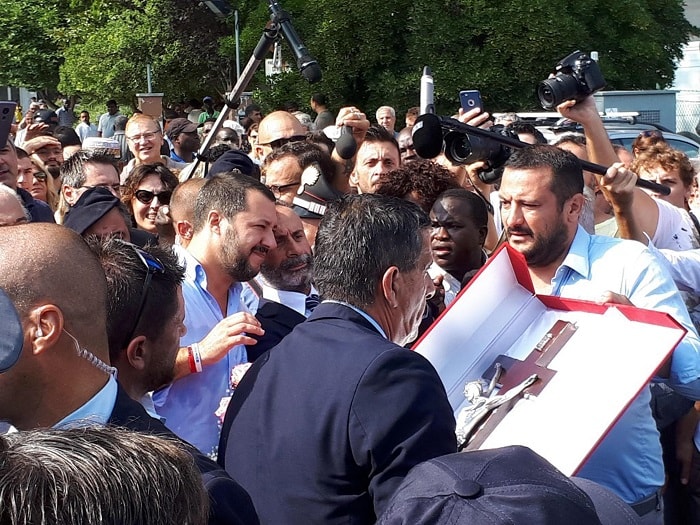 Nella struttura abitano nigeriani e pakistani. “Siamo tutti con te, ma facci lavorare” hanno detto alcuni di loro al ministro dell’Interno Matteo Salvini al termine del sopralluogo. Un residente di origine straniera ha regalato un mazzo di fiori a Salvini. Applaudito dalla folla di presenti durante la ‘visita’ agli scantinati del palazzo. Altre persone, italiane, hanno donato al ministro un grosso crocifisso all’interno di un contenitore rosso (Video Agenzia VIsta /Alexadenr Jakhnagiev, foto Ansa).