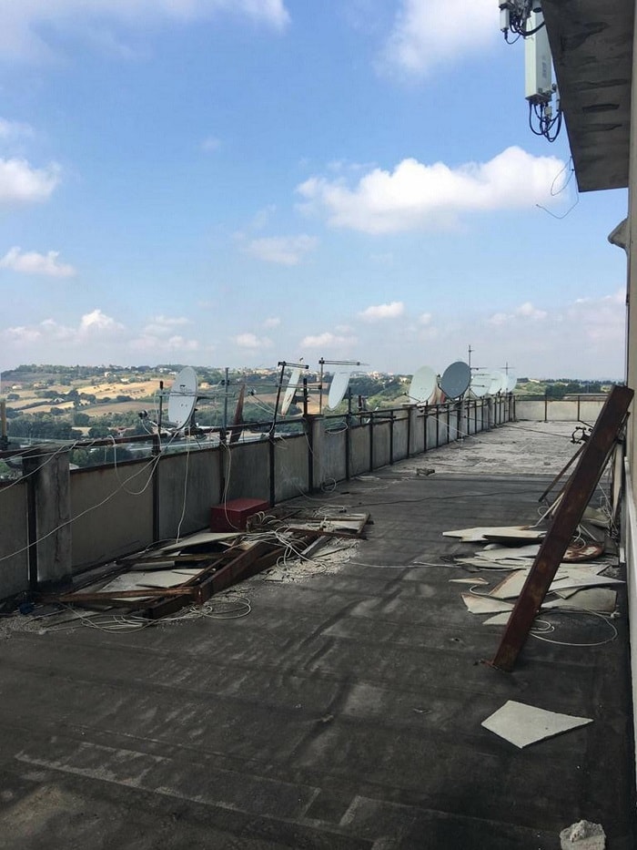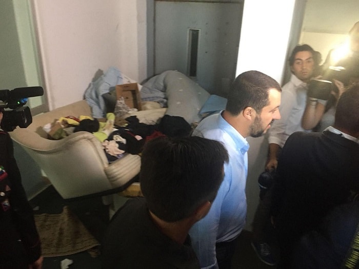 Lì il ministro si è fermato ad osservare da una finestra il panorama ‘mozzafiato’ da cui si può ammirare la riviera, a cui fanno da contraltare all’interno mobili ammassati, il soffitto danneggiato in vari punti con il rischio che pezzi di forati e intonaco cadano, corridoi bui e maleodoranti che arrivano alla grata metallica che conduce ‘all’attico’ dell’Hotel House.