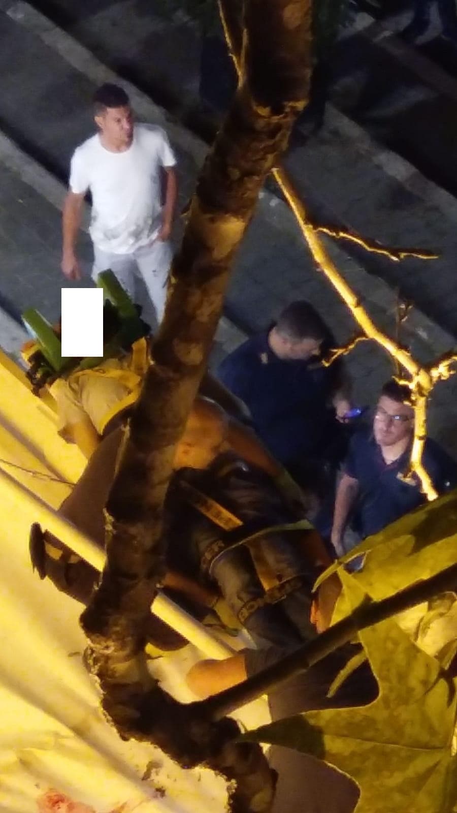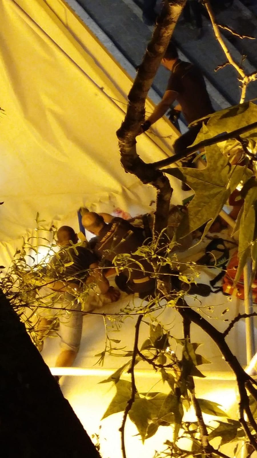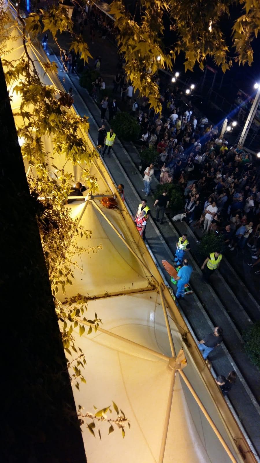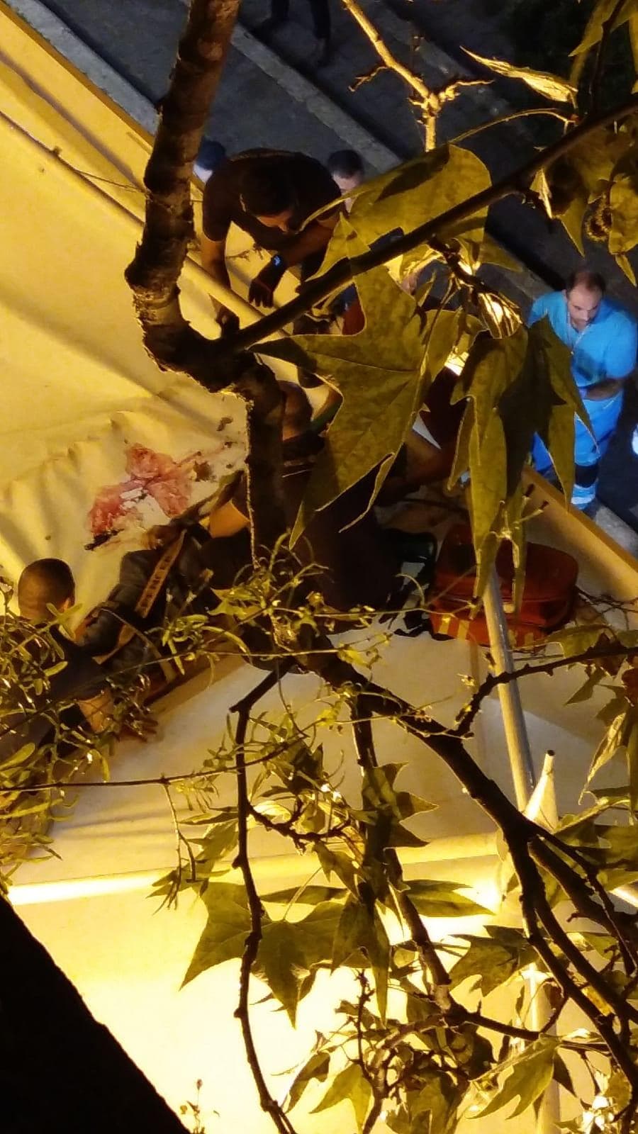 I pompieri sono intervenuti e hanno messo in sicurezza l’uomo che è sopravvissuto alla caduta. Come mostrano le foto e il video esclusivo di Blitz Quotidiano, immagini sconsigliate al pubblico più sensibile, i tendoni hanno attutito il colpo e sono rimasti sporchi di sangue.