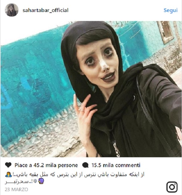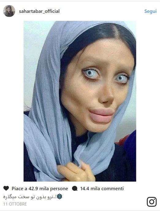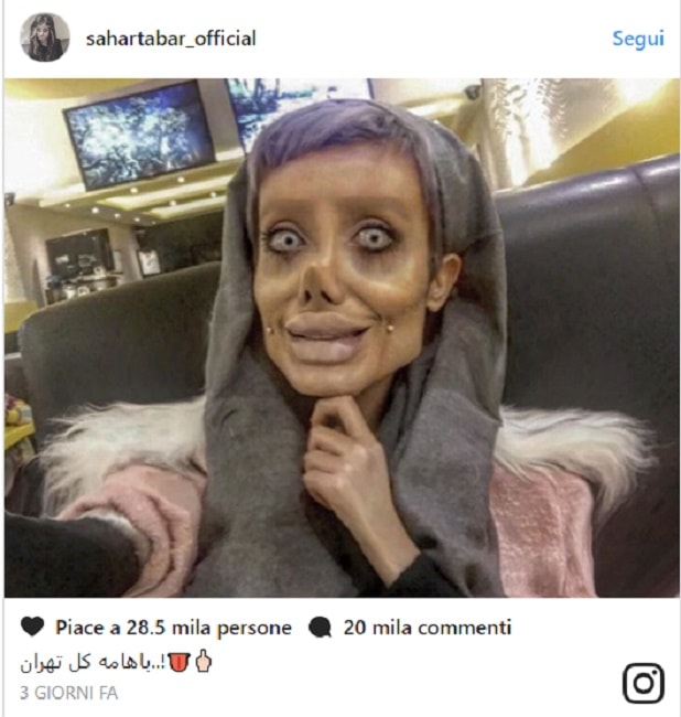 TEHERAN – Disposta a tutto pur di assomigliare ad Angelina Jolie, il suo idolo. E’ questo il sogno di Sahar Tabar, una ragazza di 22 anni di Teheran. La giovane ha un altissimo numero di follower sui social media, dove posta le foto in cui cerca di emulare l’attrice.